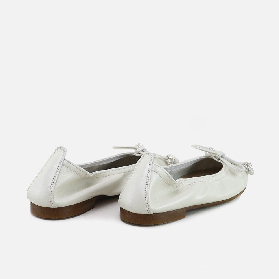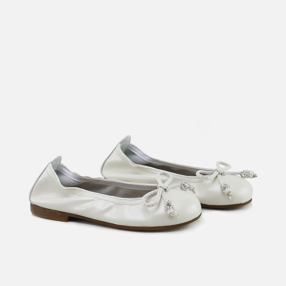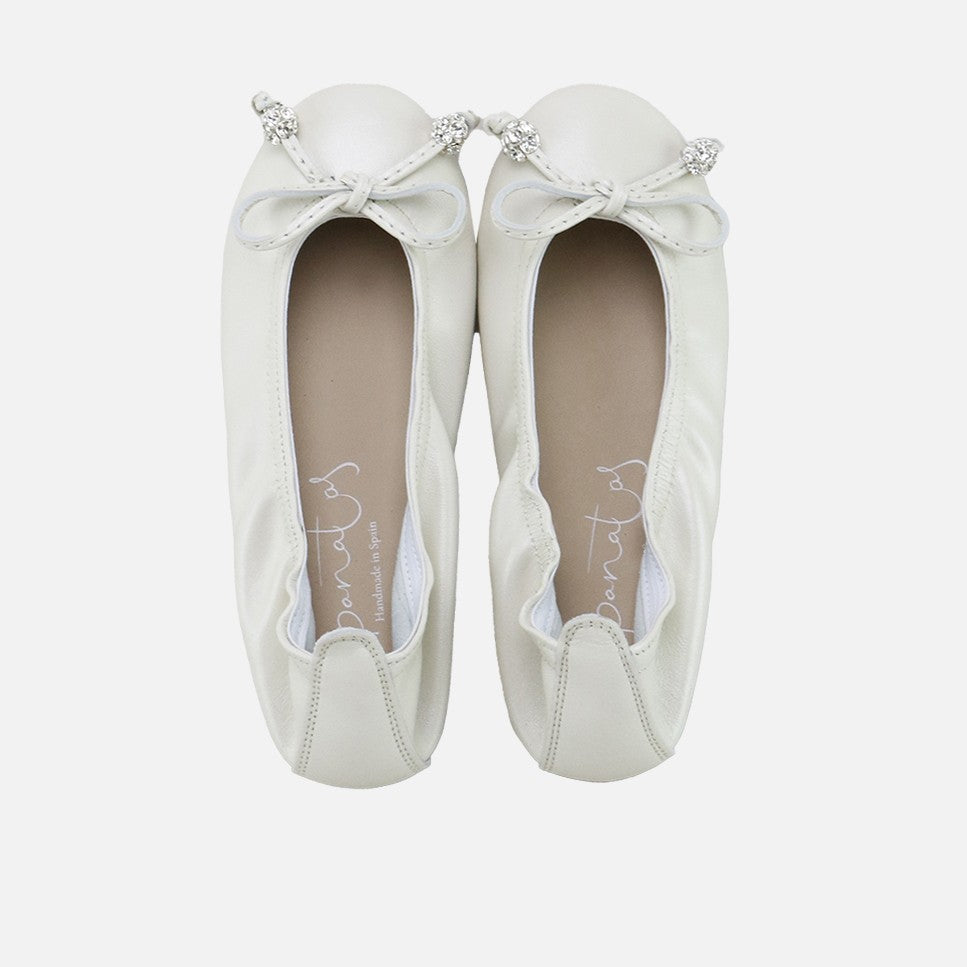 The ballerina that adapts to your foot, in its jewel version. Another marvel from our PAPANATAS collection, which dresses the feet of girls and mothers. Ideal for sharing a style. We love them for everything, from ceremonies to everyday wear. Their ornate bows give them a chic and special touch. Quality footwear, an investment in sustainability. Made of very soft leather with a breathable leather insole. Thanks to their elastic interior, they adapt perfectly to the foot. Designed and handcrafted in Villena with high-quality materials and with our ballerina last, so highly valued for its style and for maintaining all the characteristics of fit and stability, promoting the security and confidence of girls' and women's steps. With a thin, flexible, and non-slip sole, yet resistant to any surface. Handmade in Spain with love.