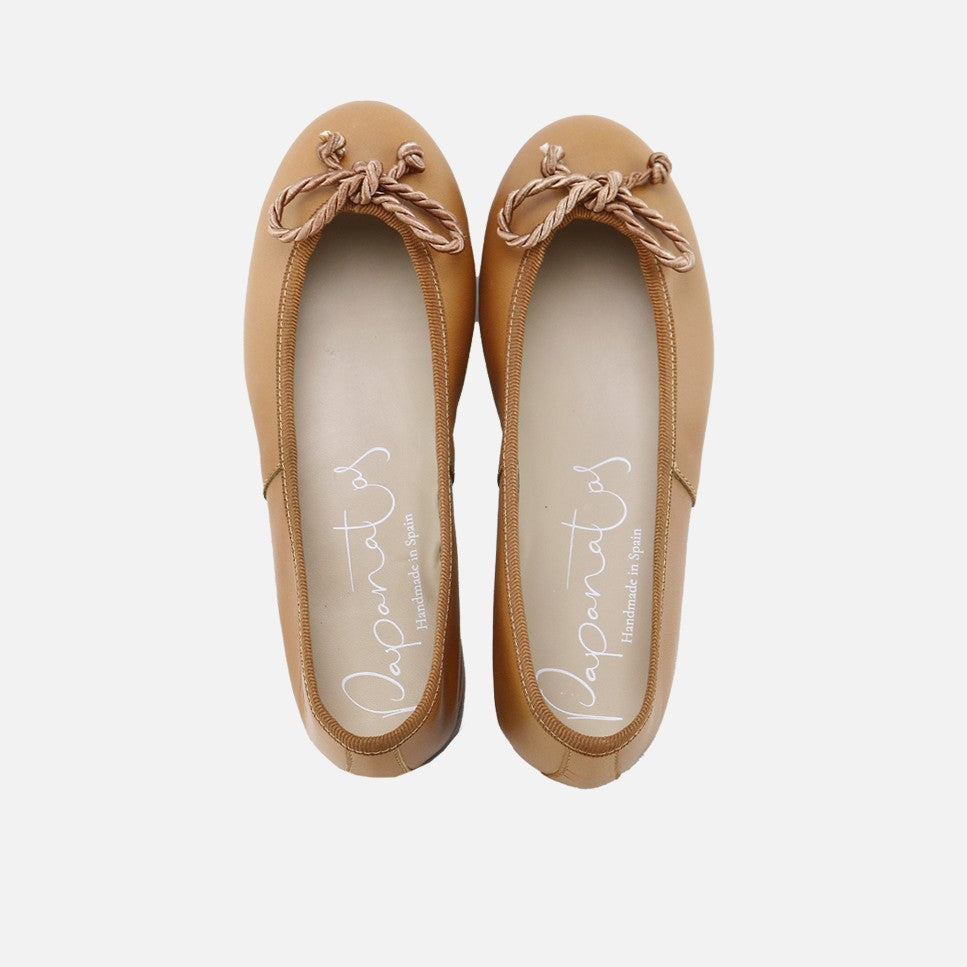 Leather ballerina flats with a thick lace bow and grosgrain ribbon from our PAPANATAS collection, which dresses the feet of girls and mothers. Ideal for sharing. We love them for everything, from ceremony to everyday wear. Quality footwear is an investment in sustainability. Made of very soft sheepskin with a breathable, thermoregulating fabric lining and a breathable leather insole. Once worn, they adapt perfectly to the foot. Designed and handcrafted in Villena with high-quality materials and using our ballerina last, so highly regarded for its style and for maintaining all the characteristics of fit and stability, promoting safe and confident steps for girls and women. With a thin, flexible, and non-slip sole, yet resistant to any surface. Handmade in Spain with love.