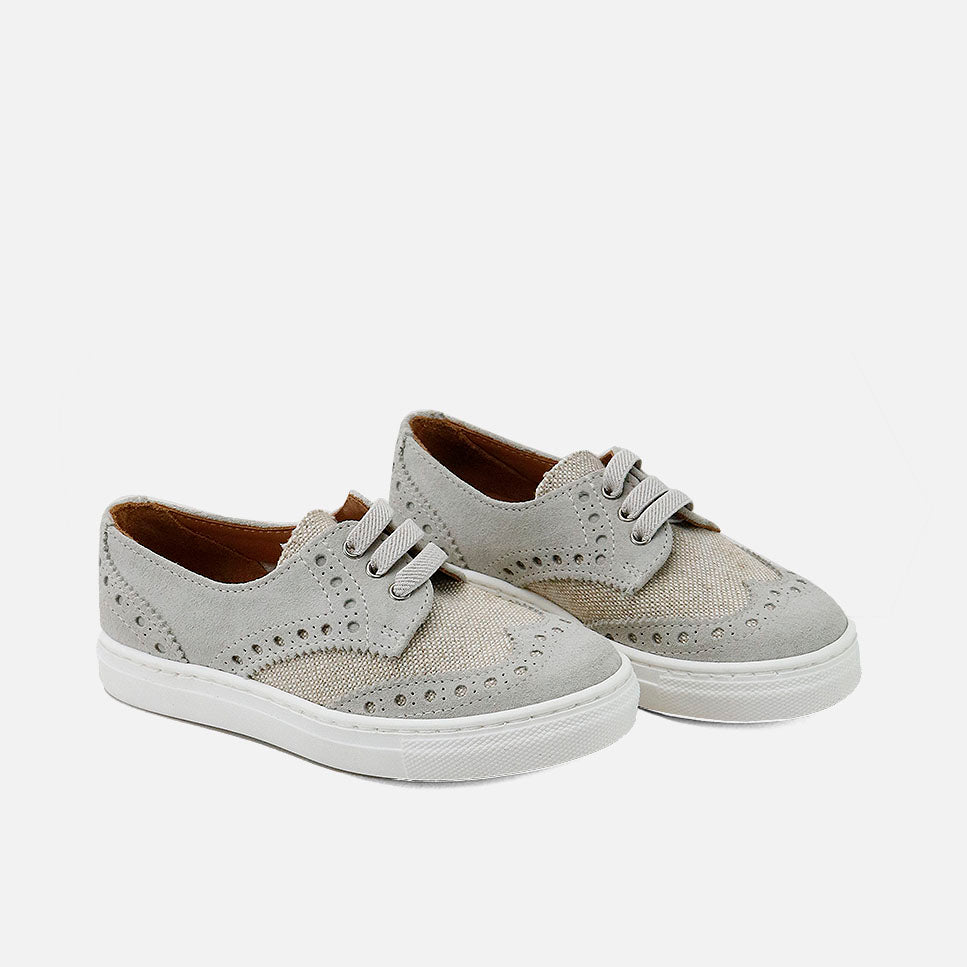 Discover our sporty bluchers for boys and girls, a style that combines classic elegance with contemporary comfort. Designed in high-quality suede and linen, they stand out for their perforated English-style finish and their versatility for formal occasions, weddings, or everyday wear with a distinctive touch.