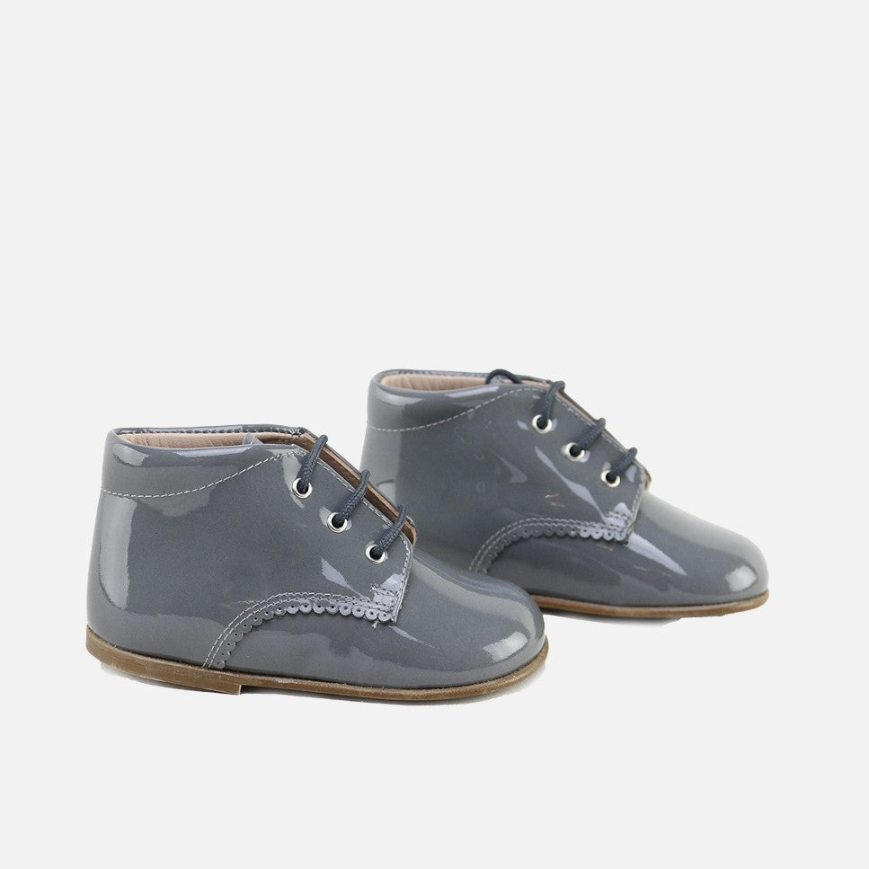 Classic Scallop Patent Leather Boot in Ash, Cute | Eli 1957