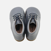 The perfect classic bootie for their first adventures! Its scalloped edges take us back to the original essence of our CUCADA collection. That bootie you'll remember for years to come, and that you'll pair with a multitude of looks. Always well-shod and comfortable! Made of durable, high-quality patent cowhide leather, with a breathable leather lining. Its color matches everything, and the cotton lace closure makes it adaptable to any foot. Designed and handcrafted in Villena with high-quality materials and with our special last to promote the safety and confidence of little feet taking their first steps, wide at the front to leave room for their toes. With a flat, leather-effect rubber sole, flexible and non-slip, yet resistant to any surface.