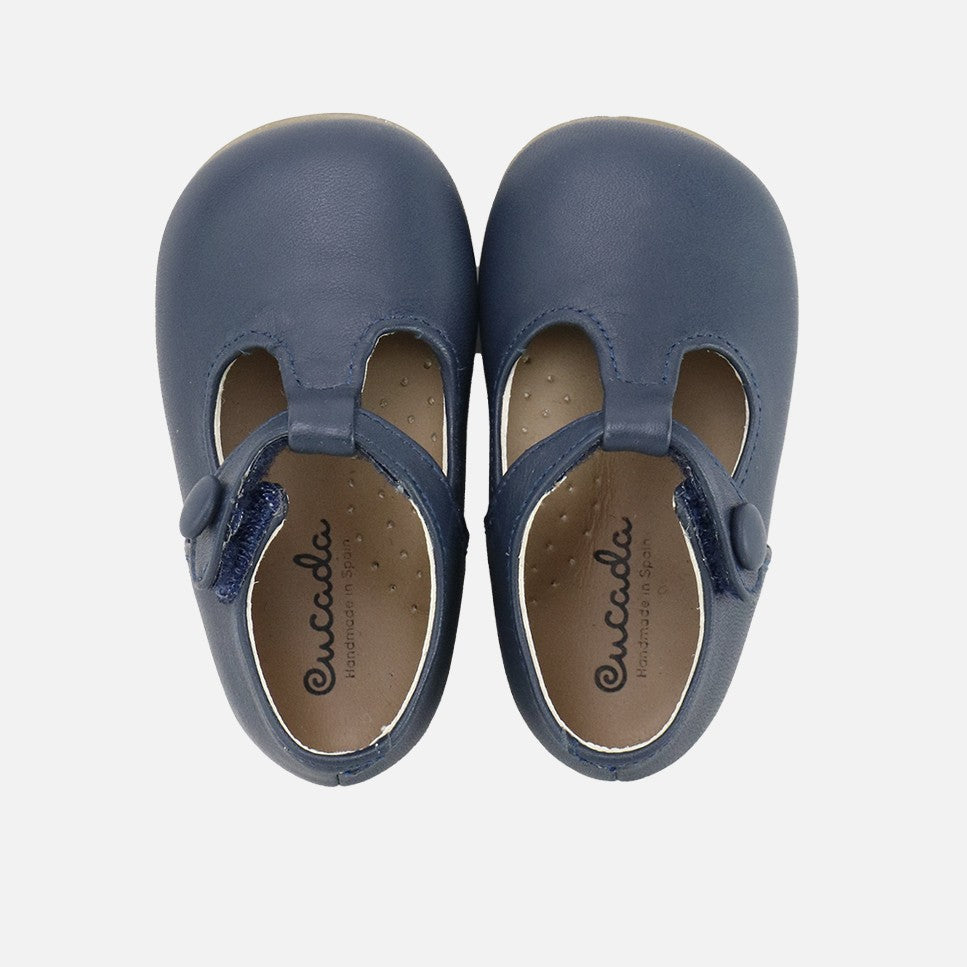 The cutest little shoes for little feet in the world. The leather pepito we wore as children, now you want it for them. This little shoe from our Eliclassics remains the same season after season to fit the most demanding feet, both during the most special moments and in their everyday lives. Offer them quality and design from their first steps. Choose your favorite shade, available in highly combinable colors. Classic pepitos from the CUCADA collection, which accompany our little ones' feet as they gain confidence when walking, so that they gradually strengthen and develop freely, while protecting them with every step. The quality of their materials is so good that they adapt to the foot, allowing freedom of movement while protecting them. Made of high-quality cowhide, with a breathable leather inner lining that prevents sweat and keeps feet at their ideal temperature. With a hook-and-loop closure, they adapt to any foot and facilitate their independence. Designed and handcrafted in Villena with high-quality materials and our special last to promote the safety and confidence of little feet taking their first steps, with a wide front to allow room for their toes. With a flat rubber sole, flexible and non-slip, yet resistant to any surface.