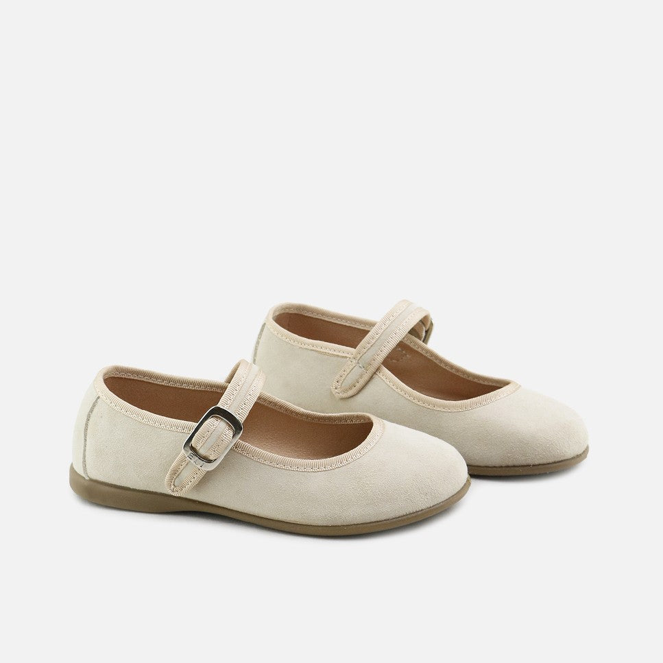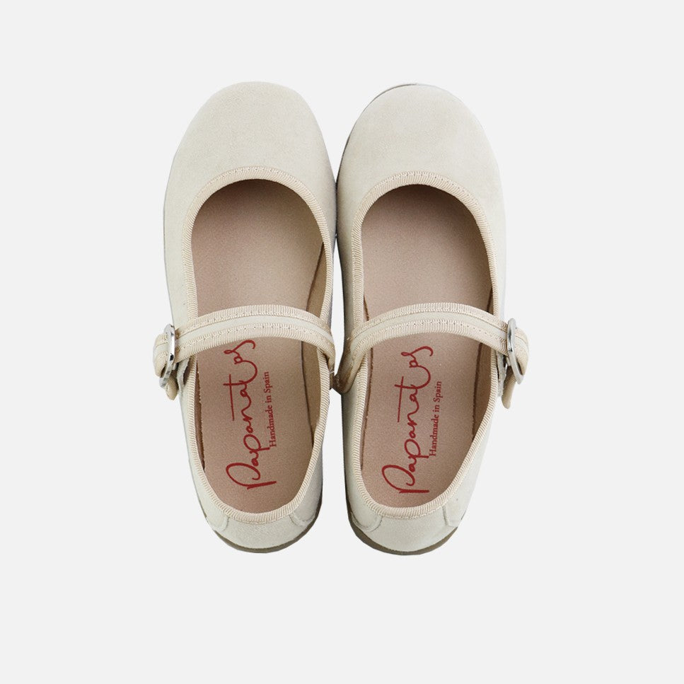 Choose Mary Janes from our Eli Basic line for quality and design at the best price. When basic and special come together, the result is a trendy, versatile, and incredibly comfortable model. They're so soft! We love them for ceremonies and as a summer staple. Made of sheepskin suede with grosgrain trim, absorbent and thermoregulating inner lining, and a breathable and antibacterial removable insole. Designed and manufactured in Alicante, with style while maintaining all the important fit and stability characteristics of healthy footwear. A special ballet flat last is not only extremely comfortable, but also promotes safe and confident steps for children and adults. The rounded, non-slip rubber sole is lightweight and ultra-flexible. Comfortable, urban, fashionable footwear with original and trendy details. Handmade in Spain with love.