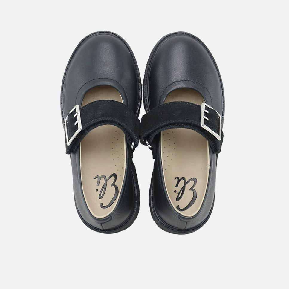 Buckle-up Mary Janes from our TANKEE COLEGIAL collection. A bestseller every year, they accompany girls' feet throughout the school year, providing them with learning and enjoyment. Their shape, perfect cut and neckline, buckle, and two-way Velcro strap create a perfect combination for success. Made of high-quality cowhide and split leather with a breathable leather lining that prevents sweat and keeps feet at their ideal temperature. Available in various combinations. Hook-and-loop closure to ensure proper support and give them the freedom to put on their shoes. Designed and handcrafted with high-quality materials and with our ballerina shape, so highly regarded for its style and for maintaining all the characteristics of fit and stability, promoting safe and confident steps for girls and women. With a flexible, non-slip rubber sole that's resistant to any surface. Choose traditional footwear, improved by the advances of so many years of tradition, for today's girls. Quality footwear is an investment in sustainability. Handmade with love.