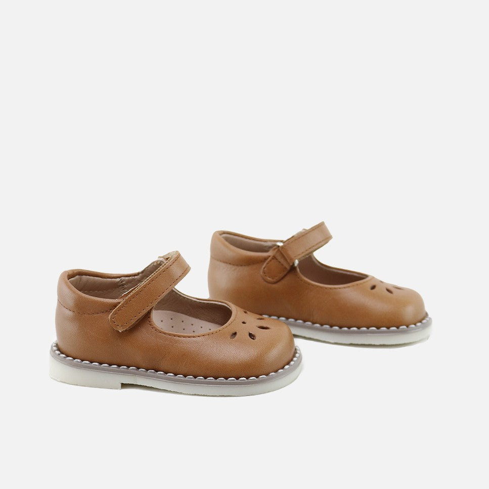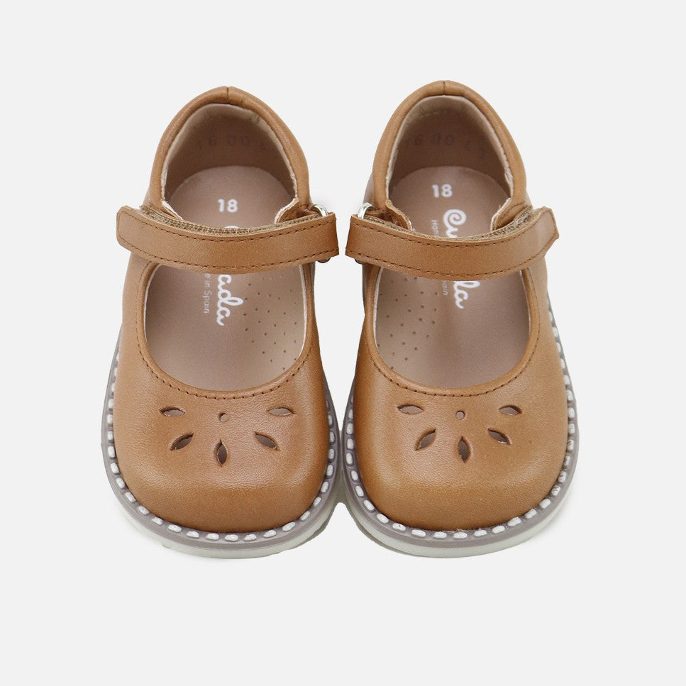 Here are the Mary Janes you've been looking for for everything. Classic, comfortable, and different thanks to their new perforated design. We'll make them prefer them to sneakers. They're like a glove! Part of the CUTE line of our CUCADA collection. They are characterized by being very light and soft, ideal for any occasion and extremely comfortable with or without socks. We accompany them as they gain confidence, so that little by little their feet strengthen and develop freely, while protecting them with every step. Made of cowhide and a high-quality, breathable, and very soft goatskin lining. High-quality materials that fit perfectly. Velcro closure, which facilitates their independence. Designed and manufactured in Villena, with style while maintaining all the important fit and stability characteristics of healthy footwear for first-time walkers. Wide last to give their little toes complete freedom and a flat, non-slip, flexible, rough rubber sole. Handmade in Spain with love.