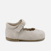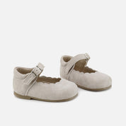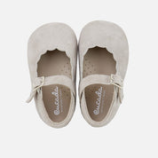 Our CUCADA collection is named after models like this one. The ideal Mary Jane shoe, as classic as it is different. Their cut and waves make them extra special, and their metallic leather makes them the perfect choice for any occasion... they go with everything! CUCADA Mary Janes with wave trim, which support feet from size 17 onwards as they gain confidence as they walk, so that they gradually strengthen and develop freely, yet protect them with every step. Available in different colors of sheepskin or suede, and with a high-quality, breathable, and very soft goatskin lining, so they can be worn with or without socks. Buckle closure. Designed and manufactured in Villena, with style while maintaining all the important fit and stability characteristics of healthy footwear for first-time walkers. Wide last to give little toes complete freedom, and a flat, non-slip, flexible leather-effect rubber sole. Handmade in Spain with love.