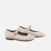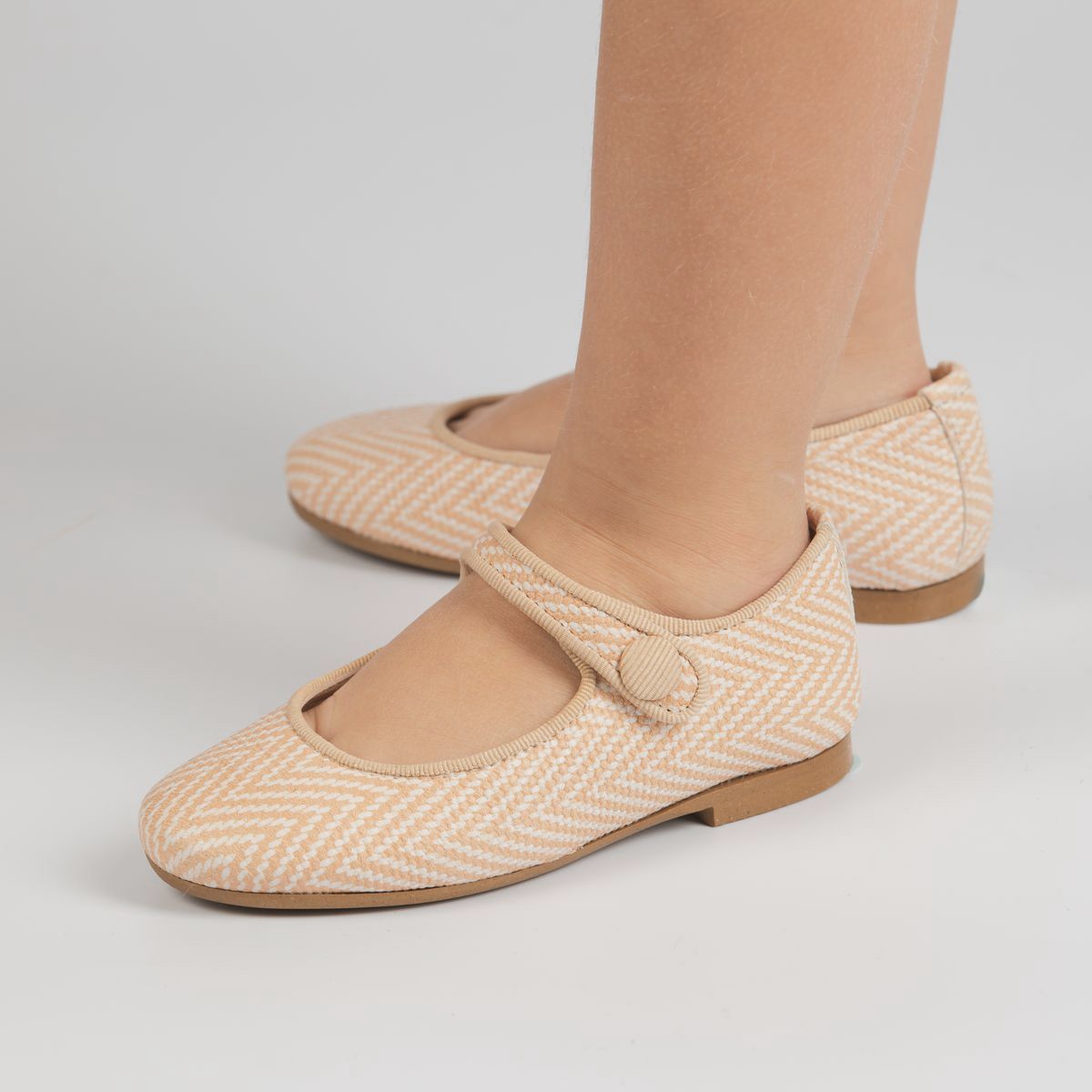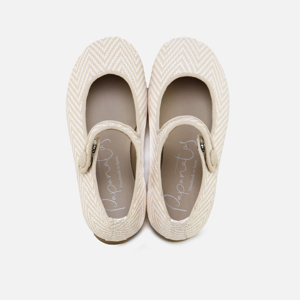 We present to you the best-selling Mary Jane from our Papanatas collection. Every season it is sought after for its perfect design. Its shape, its cut and just-right neckline, and its grossgrain trim, make a perfect mix for success. If you need a classic Mary Jane that goes with everything, look no further. They are perfect with any look, they will be the icing on the cake. Go for the footwear of a lifetime, improved by the advances of so many years of tradition, for today's girls. Quality footwear is an investment in sustainability. Made of two-tone embossed sheepskin with breathable leather lining. Once put on, they adapt perfectly to the foot. Fastening with snap buttons. Designed and handcrafted in Villena with high-quality materials and with our ballerina last so highly valued for its style and for preserving all the characteristics of fit and stability, promoting the safety and confidence of the steps of girls and women. With a thin, flexible and non-slip sole, but resistant to any surface. They fit true to size. Handmade in Spain with love.