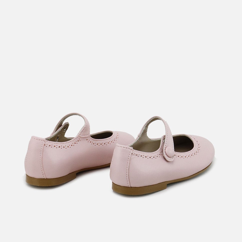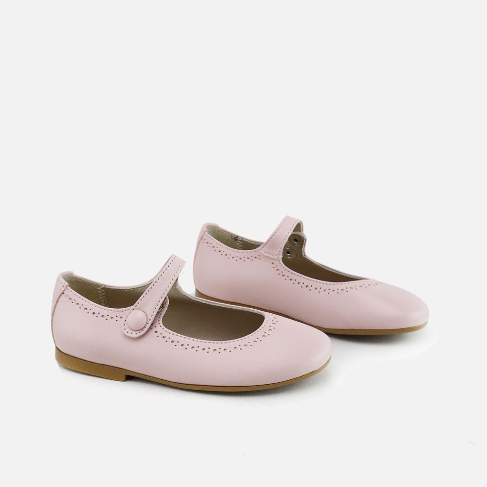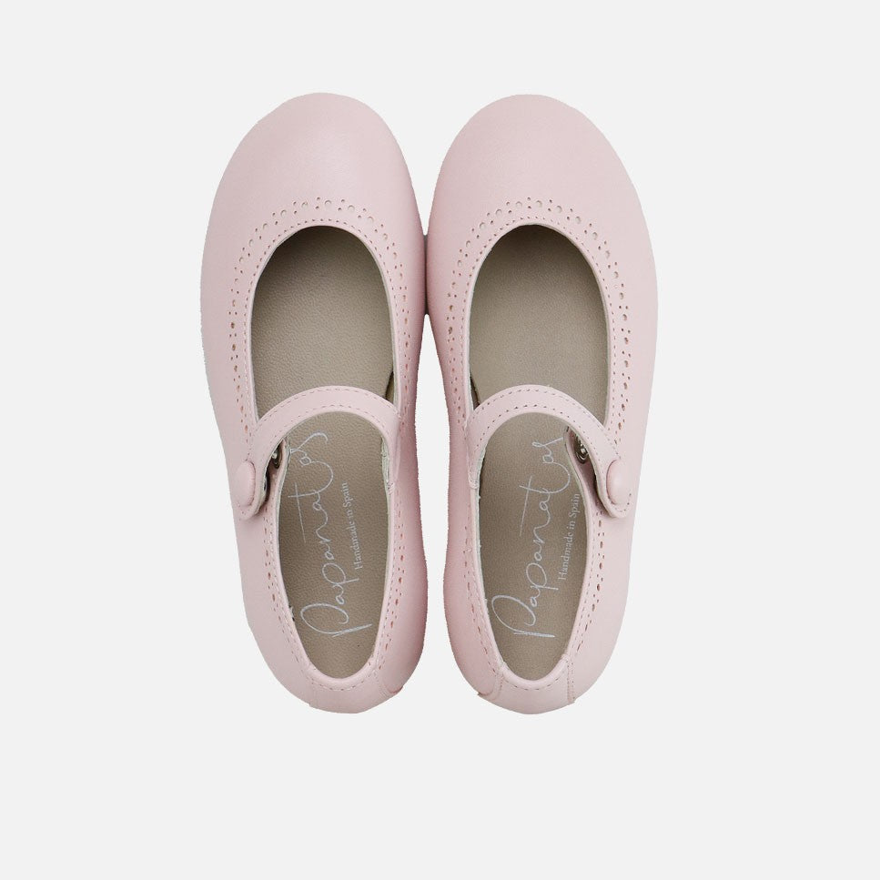 The cutest Mary Jane in our Papanatas collection. With a rounded cut and perforated edges, its shape and pattern make it fit perfectly on the foot. They go with everything and will be the finishing touch to any look. Opt for traditional footwear, improved by the advances of so many years of tradition, for today's girls. Quality footwear is an investment in sustainability. Made of sheepskin with a breathable leather lining. Once worn, they adapt perfectly to the foot. Snap button closure. Designed and handcrafted in Villena with high-quality materials and with our ballerina shape, so highly regarded for its style and for maintaining all the characteristics of fit and stability, promoting safe and confident steps for girls and women. With a thin, flexible, and non-slip sole, yet resistant to any surface. Handmade in Spain with love.