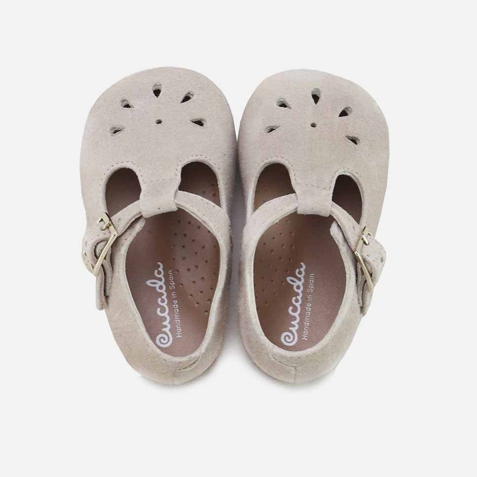 The ideal footwear for their first experiences. A new version of the classic Pepito shoe with a pointed toe. We accompany their steps so they look good while they gain confidence, so that their feet gradually strengthen and develop freely, yet we protect them with every step. Made of leather or suede with a high-quality, breathable, and very soft goatskin lining. High-quality materials that fit perfectly. Buckle closure. Designed and manufactured in Villena, with style while maintaining all the important fit and stability characteristics of healthy footwear for first walkers. Wide last to allow complete freedom for their little toes. With a flat, flexible, non-slip rubber sole, yet resistant to any surface. Opt for traditional footwear, improved by the advances of so many years of tradition, for today's children. Quality footwear is an investment in sustainability. Handmade in Spain with love.