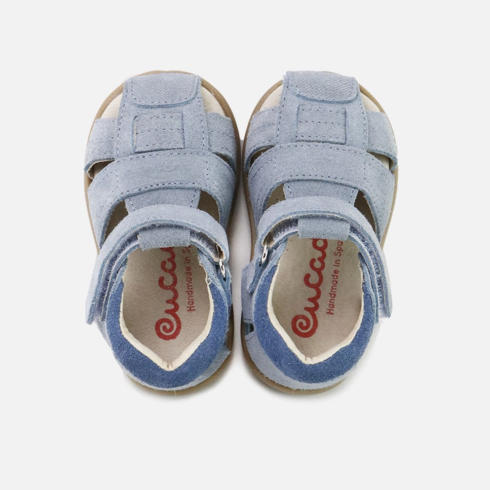 Choose our Eli Basic line to accompany their steps with quality and design at the best price. The best option for them to move freely both indoors and outdoors, respecting their development and their confidence to keep going! They guide movement, flexibility, and durability. All-terrain sandals with a crab-style design, their closed toe and heel give little ones plenty of security in their everyday adventures. Made of split cowhide leather with a breathable, thermoregulating, and antibacterial inner lining. Their Velcro closure makes them adapt to any foot, and their padded insole provides comfort so they won't want to take them off! Designed and manufactured in Alicante, with style while maintaining all the important fit and stability features of healthy footwear for first walkers. A wide last to give their little ones total freedom and a rounded sole made of durable, non-slip, and flexible rubber. Handmade in Spain with love.
