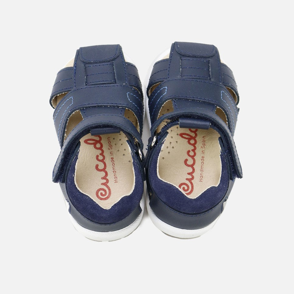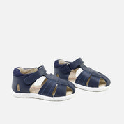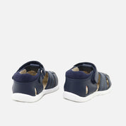 Choose our Eli Basic line to accompany their steps with quality and design at the best price. The best option for them to move freely both indoors and outdoors, respecting their development and their confidence to keep going! They guide movement, flexibility, and durability. All-terrain sandals with a crab-style design, their closed toe and heel give little ones plenty of security in their everyday adventures. Made of durable leather with a breathable, thermoregulating, and antibacterial inner lining. Their Velcro closure makes them adapt to any foot, and their padded insole gives them that comfort so they won't want to take them off! Designed and manufactured in Alicante, with style while maintaining all the important fit and stability features of healthy footwear for first walkers. A wide last to give their little toes complete freedom and a rounded sole made of durable, non-slip, and flexible rubber. Handmade in Spain with love.
