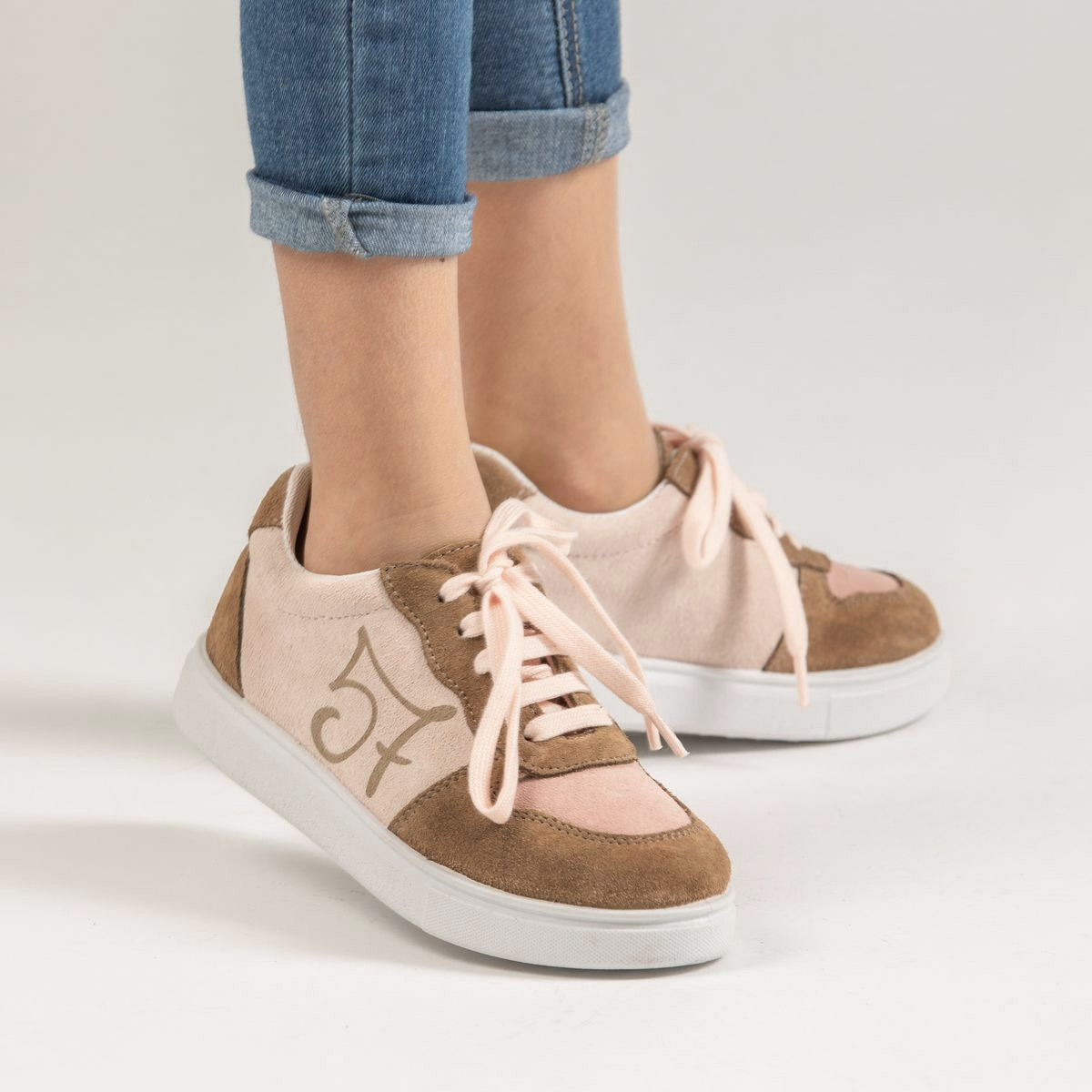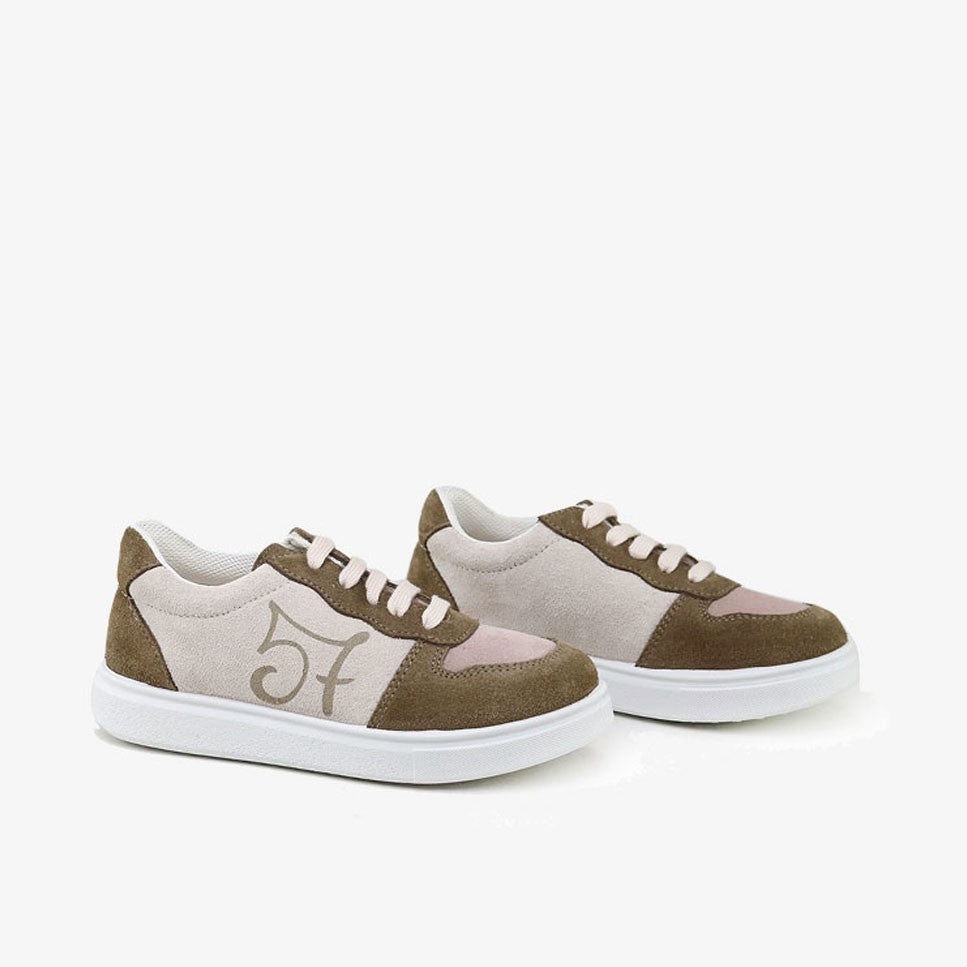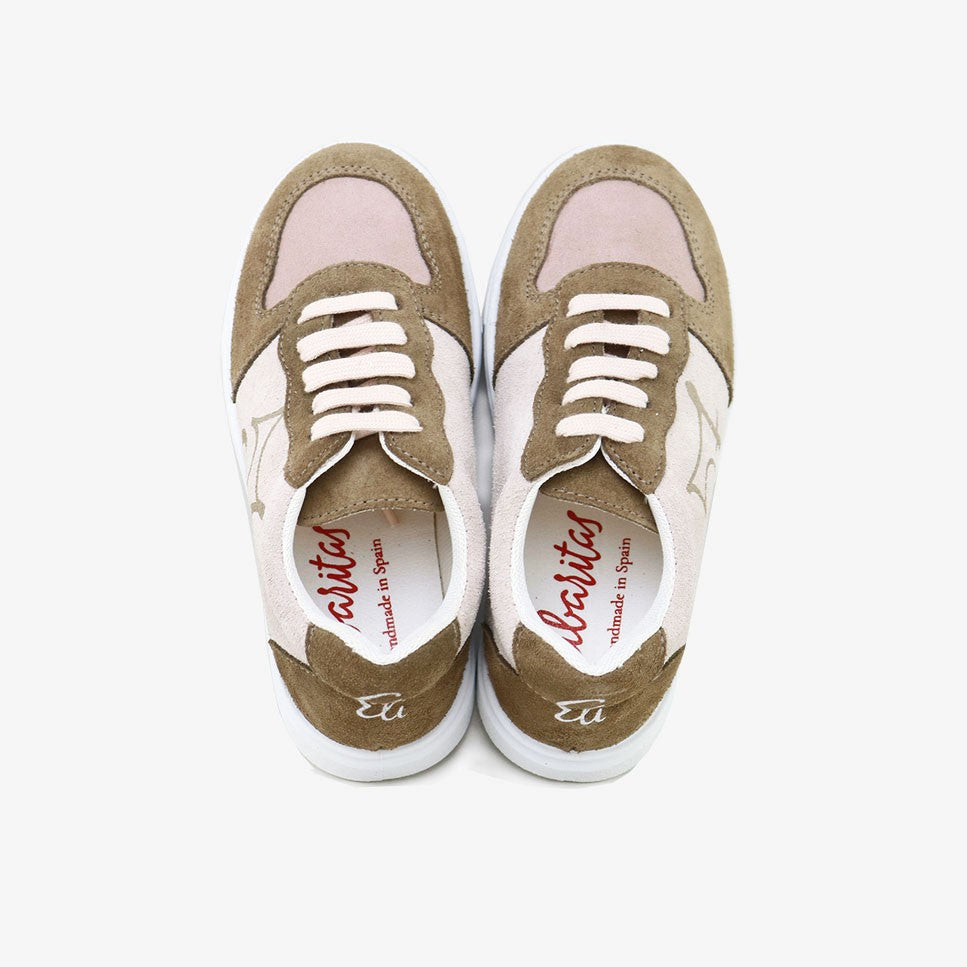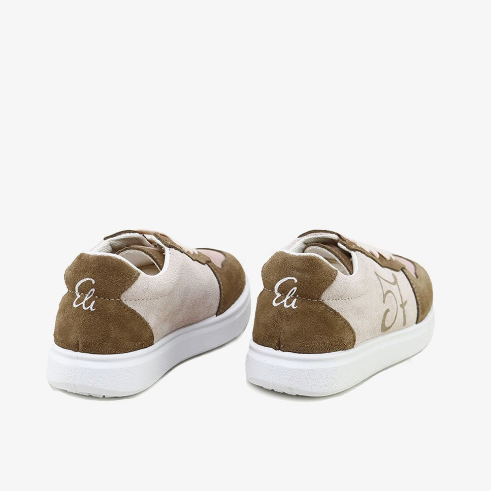 Choose the sneakers from our Eli Basic line to walk with quality and design at the best price. 57 sneakers with combined pieces and laces. Smart but casual ;) Made of bovine split leather, absorbent and thermoregulating inner lining, and breathable and antibacterial removable insole. Its closure with cotton laces makes them perfect to adapt to any foot. Designed and manufactured in Alicante, with style and preserving all the important characteristics of fit and stability of a healthy shoe. Special last for sports shoes that, in addition to being extremely comfortable, promotes the safety and confidence of the steps of children and adults. Ideal for the whole family. Non-slip, light and ultra-flexible rubber sole. Comfortable, urban, fashionable footwear, with original and trendy details. They fit true to size. Handmade in Spain with love.
