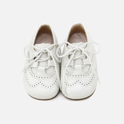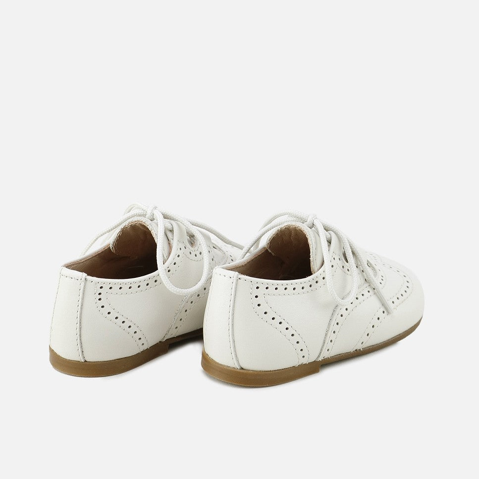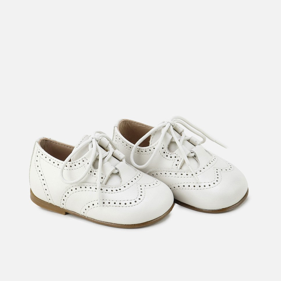 Our classic Welsh shoe from the CUCADA collection for first steps. In this version with a tongue, they're ideal for all seasons, with or without socks. Classic design with the perfect fit for any occasion. Made of high-quality cowhide and a breathable leather lining. Available in various colors and from sizes 18 to 25. Their matching cotton lace closure makes them adaptable to any foot. Designed and handcrafted in Villena with high-quality materials and with our special last to promote the safety and confidence of little feet taking their first steps, wide at the front to allow room for their toes. With a flat, flexible, and non-slip sole, yet resistant to any surface. Opt for traditional footwear, improved by the advances of so many years of tradition, for today's children. Quality footwear is an investment in sustainability. Handmade in Spain with love.