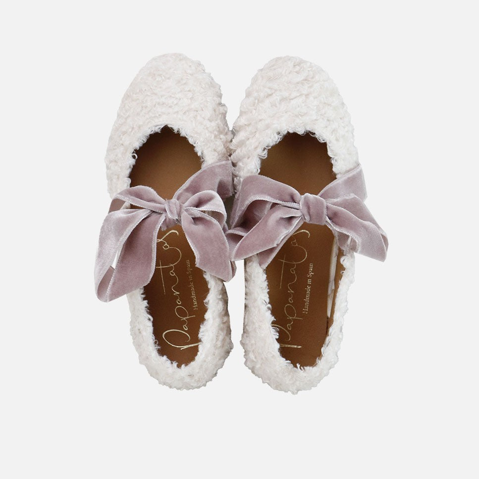 Little angel ballet flats from our PAPANATAS collection, with velvet ribbons to make a bow. The perfect style for the trendiest, and for sharing a model for both Girls and Moms. Quality footwear, it's an investment in sustainability. Made of Leo stamped split leather with a breathable leather lining and a padded insole. Once worn, they adapt perfectly to the foot. Designed and handcrafted in Villena with high-quality materials and using our ballerina last, so highly regarded for its style and for maintaining all the characteristics of fit and stability, promoting safe and confident steps for girls and women. With a thin, flexible, and non-slip sole, yet resistant to any surface. Handmade in Spain with love.