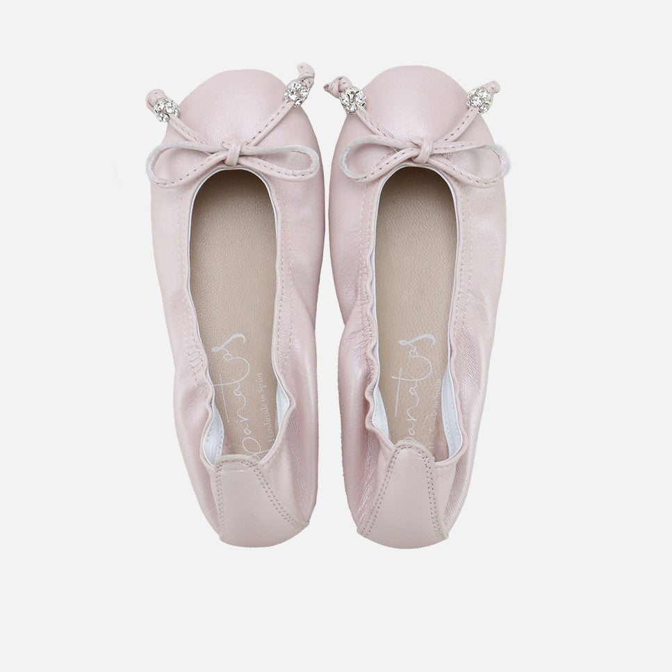 The ballerina that adapts to your foot, in its jewel version. Another marvel from our PAPANATAS collection, which dresses the feet of girls and mothers. Ideal for sharing a style. We love them for everything, from ceremonies to everyday wear. Their ornate bows give them a chic and special touch. Quality footwear, an investment in sustainability. Made of very soft leather with a breathable leather insole. Thanks to their elastic interior, they adapt perfectly to the foot. Designed and handcrafted in Villena with high-quality materials and with our ballerina last, so highly valued for its style and for maintaining all the characteristics of fit and stability, promoting the security and confidence of girls' and women's steps. With a thin, flexible, and non-slip sole, yet resistant to any surface. Handmade in Spain with love.