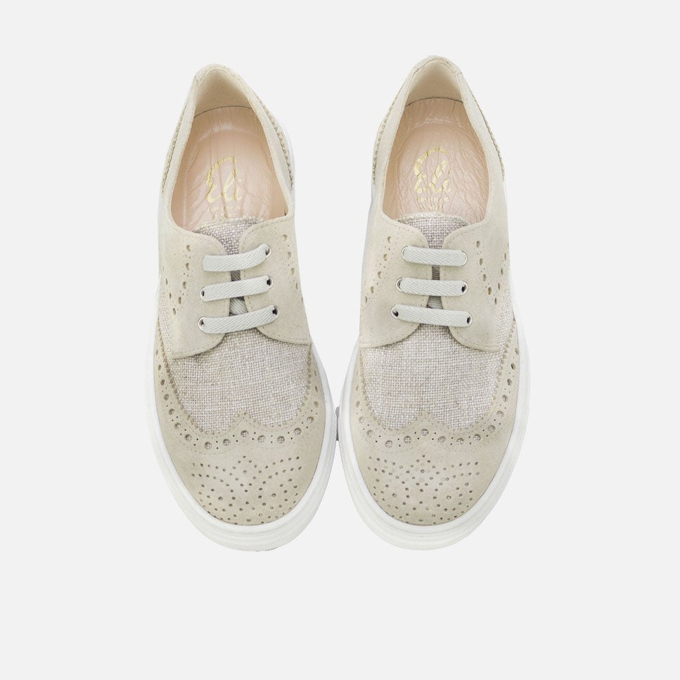 Discover our sporty bluchers for boys and girls, a style that combines classic elegance with contemporary comfort. Designed in high-quality suede and linen, they stand out for their perforated English-style finish and their versatility for formal occasions, weddings, or everyday wear with a distinctive touch.