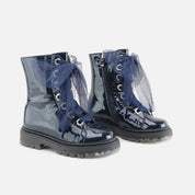 Navy Blue Patent Leather Plumeti Boot by Uno Sibaritas | Eli 1957
