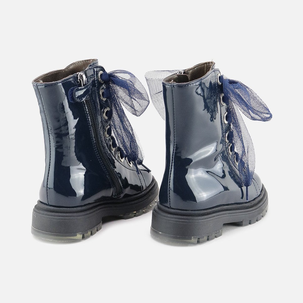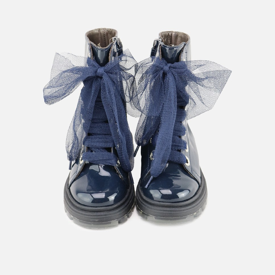 Mid-calf patent leather boot from our SIBARITAS collection, which will fit the trendiest feet this season. Based on a classic design, its materials, metallic details, and plumeti straps are what give it a 10. With this model, which they can combine with everything, they'll be incredibly comfortable and their feet will be cared for, allowing them freedom while protecting them from all movements, surfaces, and temperatures. Made of high-quality bovine patent leather and a breathable cowhide lining that prevents sweat and keeps feet at their ideal temperature. With matching plumeti fabric straps as a finishing touch. Zip closure for easy use. Designed and handcrafted in Villena with high-quality materials and with our last, backed by more than 30 years of experience, wide at the front to allow room for little toes and perfect for protecting their heels. With flexible, non-slip rubber track soles, yet resistant to any surface. Opt for traditional footwear, improved by the advances of so many years of tradition, for today's children. Quality footwear is an investment in sustainability. Handmade in Spain with love.