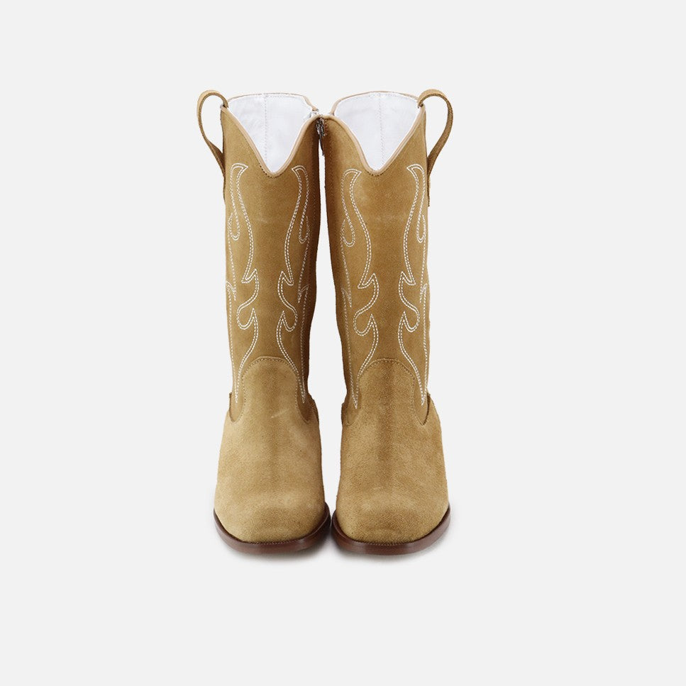 The most stylish cowboy boots to be well-fitted, always with class and style. Within the cowboy design they are a "less is more", but their color and embroidery give them everything to be the most special. Made of cowhide split leather, with breathable cowhide lining. Chosen to be used on any occasion. Inner zipper closure. Designed and handcrafted in Villena with high quality materials and with our special boot last, which makes them stylish as well as very comfortable. Rubber sole with country heel, non-slip and resistant to any surface. Quality footwear is an investment in sustainability. They fit true to size. Handmade in Spain with love. Choose well, choose Eli.