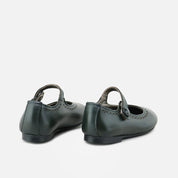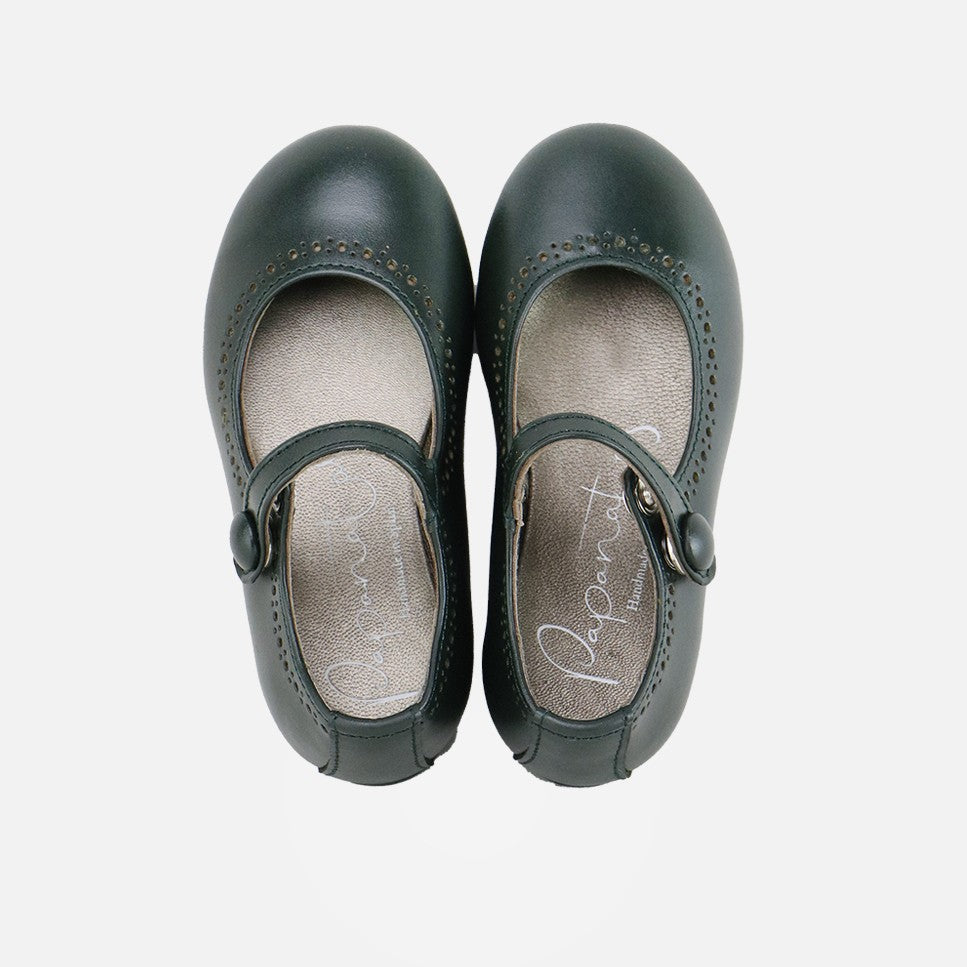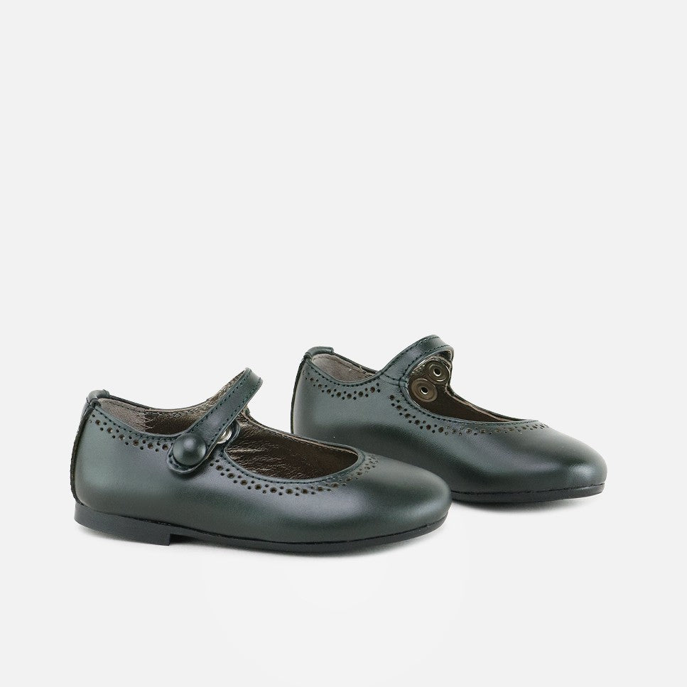 The cutest Mary Jane in our Papanatas collection. With a rounded cut and perforated edges, its shape and pattern make it fit perfectly on the foot. They go with everything and will be the finishing touch to any look. Opt for traditional footwear, improved by the advances of so many years of tradition, for today's girls. Quality footwear is an investment in sustainability. Made of metallic sheepskin with a breathable leather lining. Once worn, they adapt perfectly to the foot. Snap button closure. Designed and handcrafted in Villena with high-quality materials and with our ballerina shape, so highly regarded for its style and for maintaining all the characteristics of fit and stability, promoting safe and confident steps for girls and women. With a thin, flexible, and non-slip sole, yet resistant to any surface. Handmade in Spain with love.