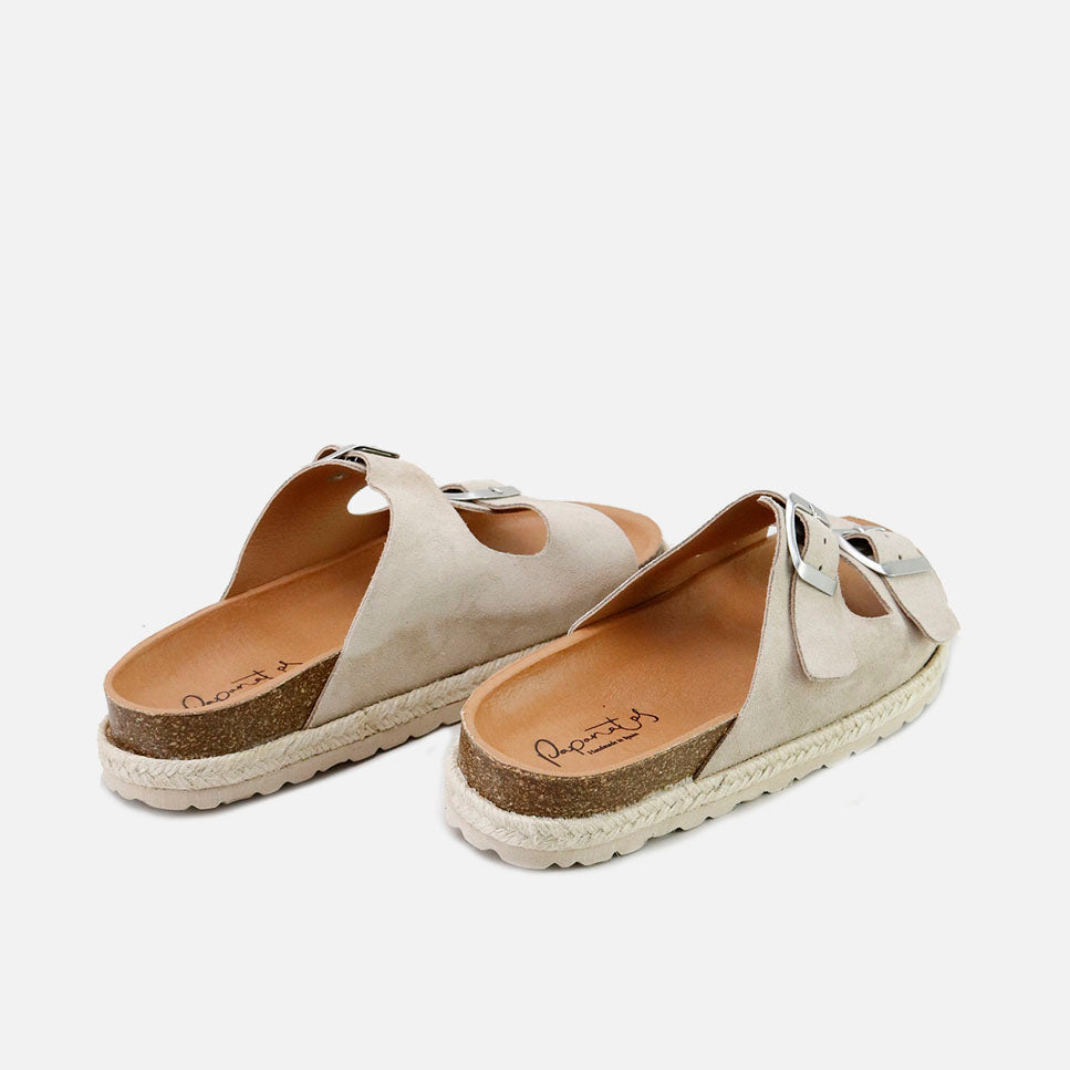 Choose the BIO sandals from our Eli Basic line to walk with quality, comfort and design at the best price. Two-buckle model, which will match with everything. Cool and stylish feet. Made of cowhide split leather, with absorbent and thermoregulating inner lining. Its BIO sole hugs the foot so that it feels protected, and the braided platform provides the chic touch you were looking for. Designed and manufactured in Alicante, with style and preserving all the important characteristics of fit and stability of healthy footwear. Special last of BIO sandals that, in addition to being extremely comfortable, promotes the safety and confidence of children and adults' steps. Very light cork sole with a non-slip rubber base that is resistant to any surface. Comfortable, urban, fashionable footwear, with original and trendy details. Quality footwear, it is an investment in sustainability. They fit true to size. Handmade in Spain with love.