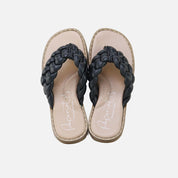 Thong sandals with braided straps from our PAPANATAS collection. Their flip-flop-style design and breathable leather padded insole provide extreme comfort. Made from very soft braided eco-leather. Their black colour makes them very combinable and their design suitable for any occasion. Designed and handcrafted in Villena with high-quality materials and with our special sandal last that promotes the safety and confidence of girls and women's steps. With a flat, flexible and non-slip sole, but resistant to any surface. * Perfect shoes for girls and mothers to share the same model. Comfortable, urban, fashionable footwear, with original and trendy details.
