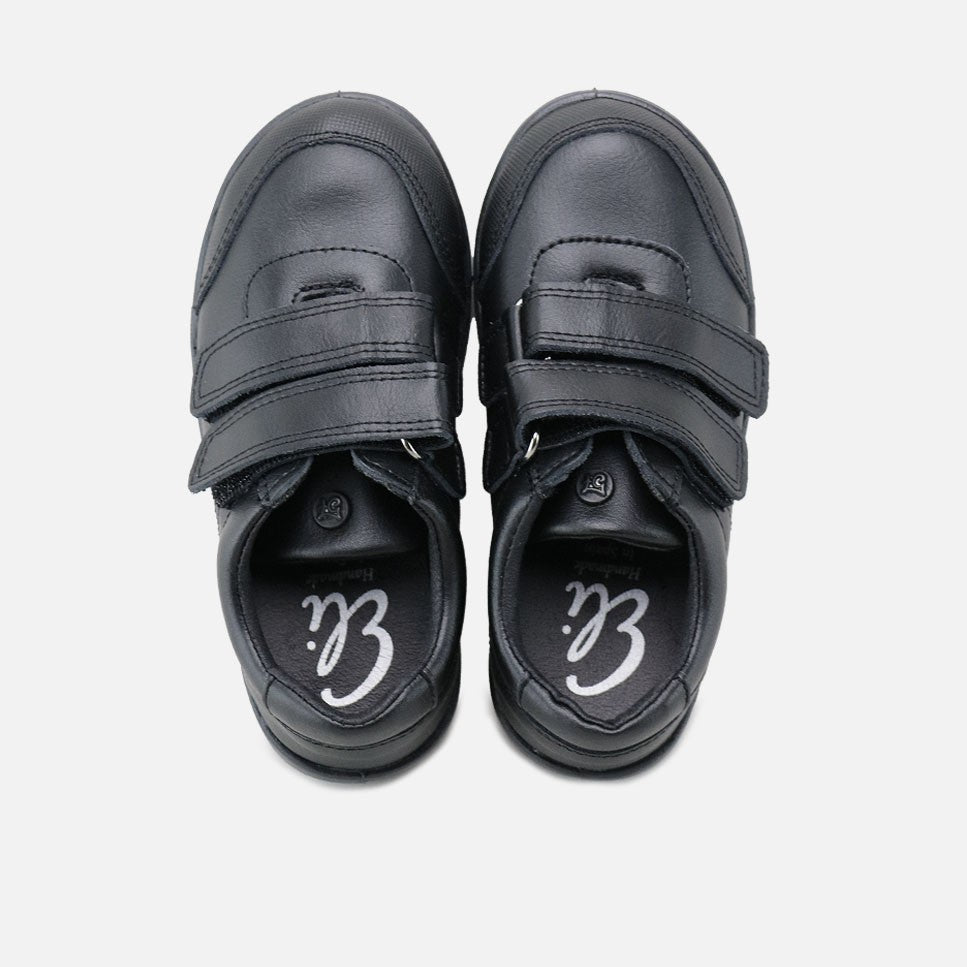 Sporty blucher shoe from our Washable School collection by Elibasic. Made of cowhide leather and fully lined with absorbent and thermoregulating fabric. Removable, breathable, and antibacterial insole. Double hook-and-loop closure to ensure proper fit, giving children freedom when putting on their shoes. Non-slip, lightweight, and ultra-flexible rubber sole. Handcrafted in Spain with high-quality leathers and materials. Quality footwear is an investment in sustainability. True to size. Handmade in Spain with love. Wash them in your washing machine (up to 30°C). They'll enjoy them for a long time!