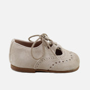 The most special restyling of recent seasons. Together with its sister, the Mary Jane, they ensure our Eliclassics remain among the most beloved shoes year after year. Chopped English shoes from the CUCADA collection, which support feet from size 17 onwards as they gain confidence while walking, gradually strengthening and developing freely, yet protecting them with every step. Various versions available in leather or suede, with a high-quality, breathable, and very soft goatskin lining. Matching cotton lace closure. Designed and manufactured in Villena, with style while maintaining all the important fit and stability characteristics of healthy footwear for first-time walkers. A wide last to allow complete freedom for little toes and a flat, non-slip, flexible rubber sole that's resistant to any surface. Opt for traditional footwear, improved by the advances of so many years of tradition, for today's children. Quality footwear is an investment in sustainability. Available in sizes 18 to 25. Handmade in Spain with love.