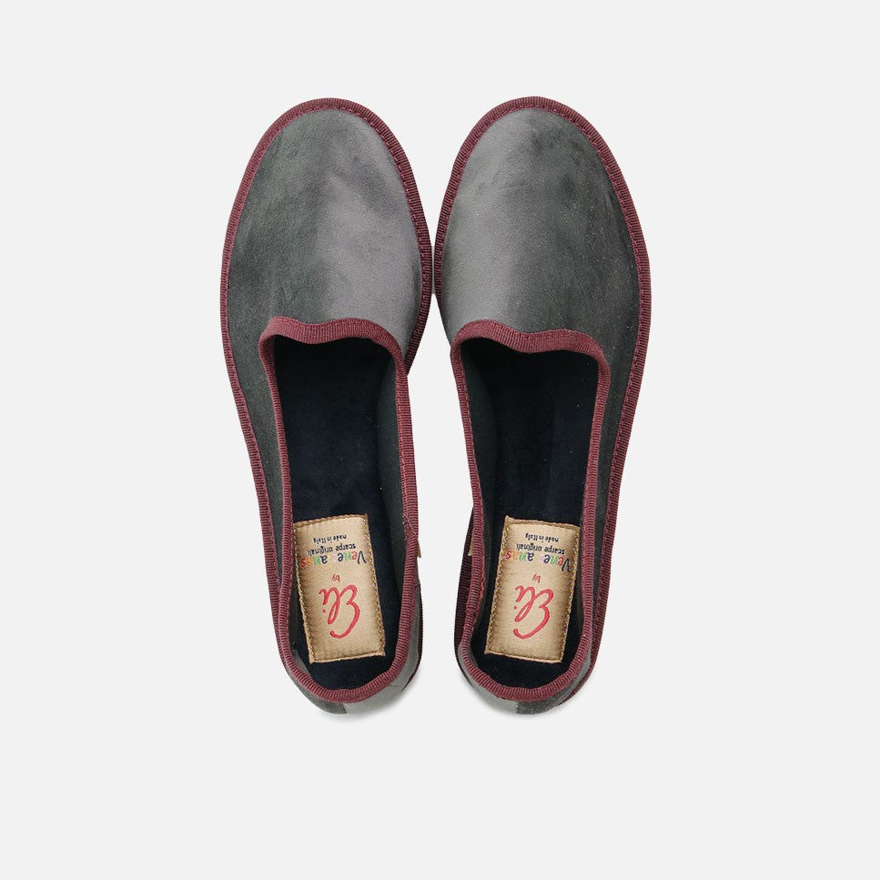 The most special collaboration "Eli by Venezianas" is back this Spring in the most desirable combinations. Classic Veneziana slipper style with round toe made using the traditional sacchetto technique. Available in various shades of velour, with a non-slip sole made of recycled rubber. Comfortable, non-slip and not harmful to wood, they were and are perfect to wear on boats, hence their popularity among the gondoliers of Venice. Wearing Venezianas is a lifestyle that discovers the pleasure of wearing them. This, together with their comfort and at the same time, style, make them ideal at any time. VENEZIANAS have no gender, women and men wear them equally. And now with this new collaboration, the little ones in the house will also enjoy them. Handmade in Italy. They fit true to size.