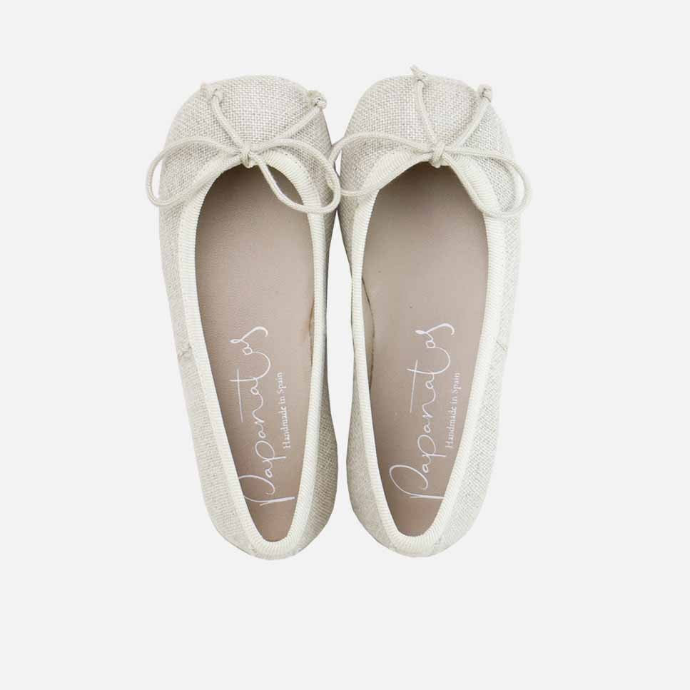 The classic ballerina flat with a fine cord and grosgrain ribbon bow, now with a super-soft crepe sole. Part of our PAPANATAS collection, which dresses the feet of girls and moms. Ideal for sharing a style. Once worn, they adapt perfectly to the foot. Designed and handcrafted in Villena with high-quality materials and using our ballerina last, so highly regarded for its style and for maintaining all the characteristics of fit and stability, promoting safe and confident steps for girls and women. With a thin, flexible, and non-slip sole, yet resistant to any surface. Opt for traditional footwear, improved by the advances of so many years of tradition, for today's girls. Quality footwear is an investment in sustainability. Handmade in Spain with love.