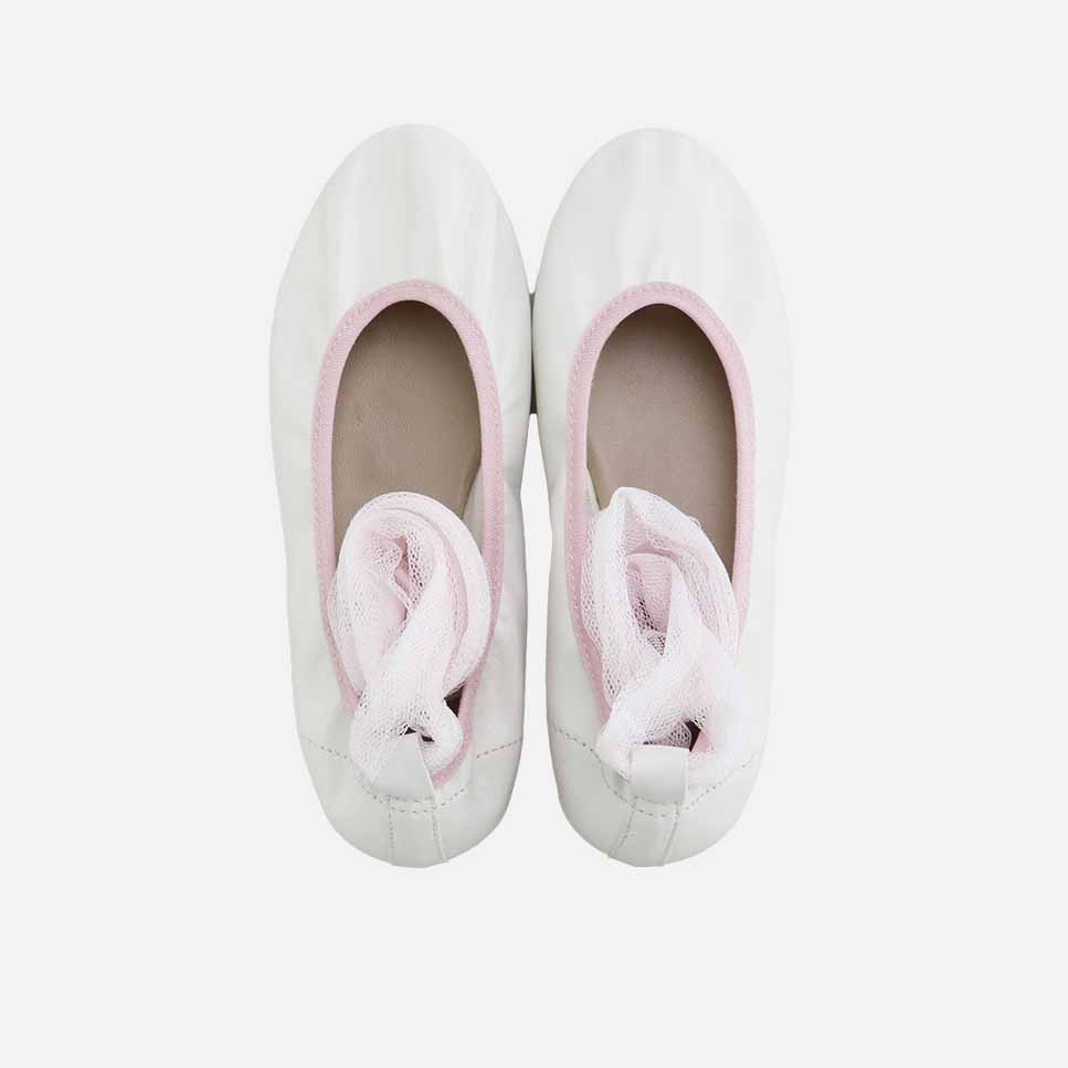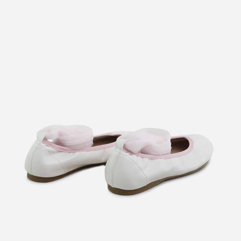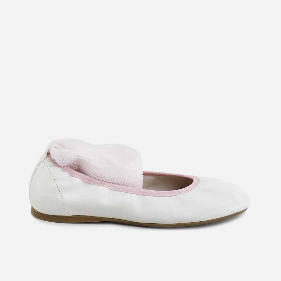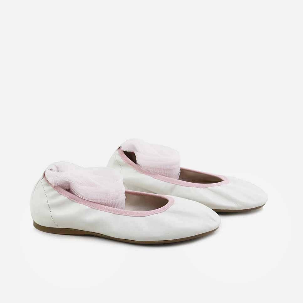 Ballet flats made of super soft, supple leather from our PAPANATAS collection, which dresses the feet of girls and mothers. Ideal for sharing. The perfect style for Communion and ceremonies, and to wear afterwards with any look. Quality footwear, an investment in sustainability. Made of soft, unlined sheepskin with a breathable leather insole. With an internal elastic band and tulle ribbon to tie at the ankle or leg. Once worn, they adapt perfectly to the foot. Designed and handcrafted in Villena with high-quality materials and using our ballerina last, so highly regarded for its style and for maintaining all the characteristics of fit and stability, promoting the security and confidence of girls' and women's steps. With a thin, flexible, and non-slip sole, yet resistant to any surface. Handmade in Spain with love.