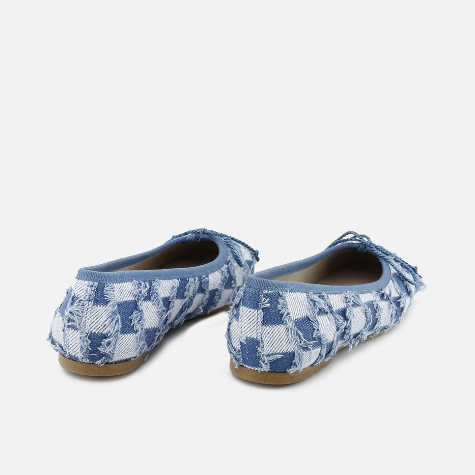 The classic ballerina flat with a fine cord and grosgrain ribbon from our PAPANATAS collection, now with a square shape. Ideal in any size, perfect for sharing between mother and daughter. Made with patchwork denim fabric and with a breathable leather lining, they adapt perfectly to the foot once worn. Designed and handcrafted in Villena with high-quality materials and with our ballerina flat shape, so highly regarded for its style and for maintaining all the characteristics of fit and stability, promoting safe and confident steps for girls and women. With a thin, flexible, and non-slip sole, yet resistant to any surface. Opt for traditional footwear, improved by the advances of so many years of tradition, for today's girls. Quality footwear is an investment in sustainability. Handmade in Spain with love.