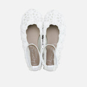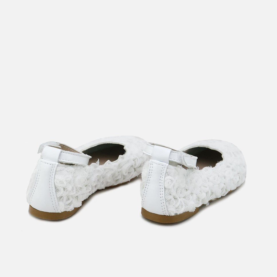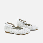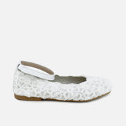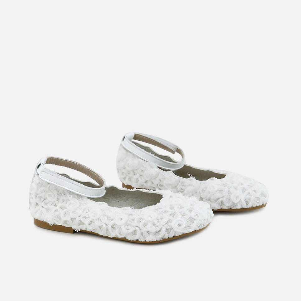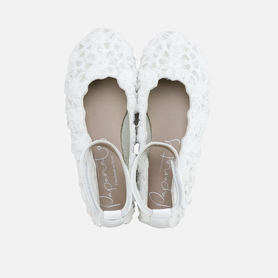 The most special ballerina in our PAPANATAS collection. They were designed to be the most special item for that event, but our customers have made them their staple because they're so wearable and incredibly comfortable because they adapt to the foot. The classic ballerina with an ankle strap, but in a unique combination! Made of tulle cord with details and a breathable leather insole. Very comfortable Velcro closure. Also available in a Mary Jane style. Opt for traditional footwear, improved by the advances of so many years of tradition, for today's girls. Quality footwear is an investment in sustainability. Designed and handcrafted in Villena with high-quality materials and with our ballerina last, so highly valued for its style and for maintaining all the characteristics of fit and stability, promoting the security and confidence of girls' and women's steps. With a thin, flexible, and non-slip sole, yet resistant to any surface. Handmade in Spain with love.