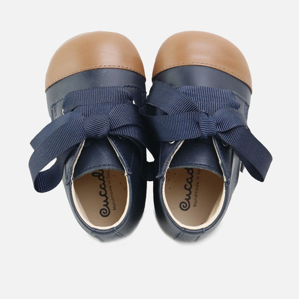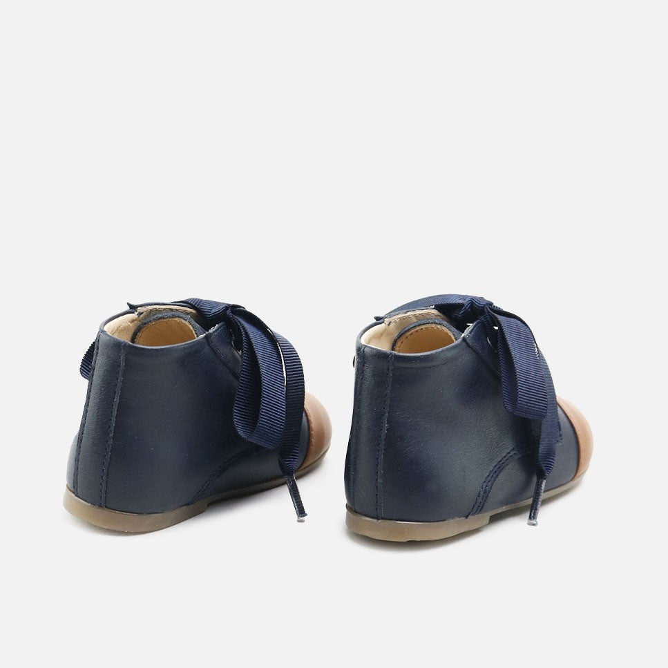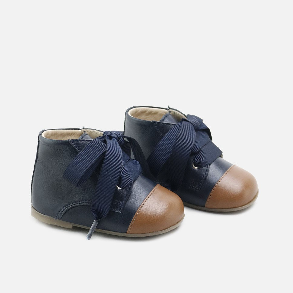The cutest little shoes for little feet in the world. This adorable boot will dress up any look and be the star of their first adventures. The best option for keeping them well-shod, protected, and comfortable. We support their feet as they gain confidence as they walk, so they gradually strengthen and develop freely, while protecting them with every step. Made of high-quality, durable cowhide leather with a very soft and breathable goatskin inner lining. With a combined toe cap for a chic touch. Their grosgrain lace-up closure makes them adaptable to any foot. Designed and manufactured in Villena, with style while maintaining all the important fit and stability features of healthy footwear for first walkers. A wide last to allow complete freedom for their little toes, and a flat, non-slip, flexible rubber sole that's resistant to any surface. Choose traditional footwear, improved by the advances of so many years of tradition, for today's children. Quality footwear is an investment in sustainability. Available in sizes 18 to 25. Handmade in Spain with love.