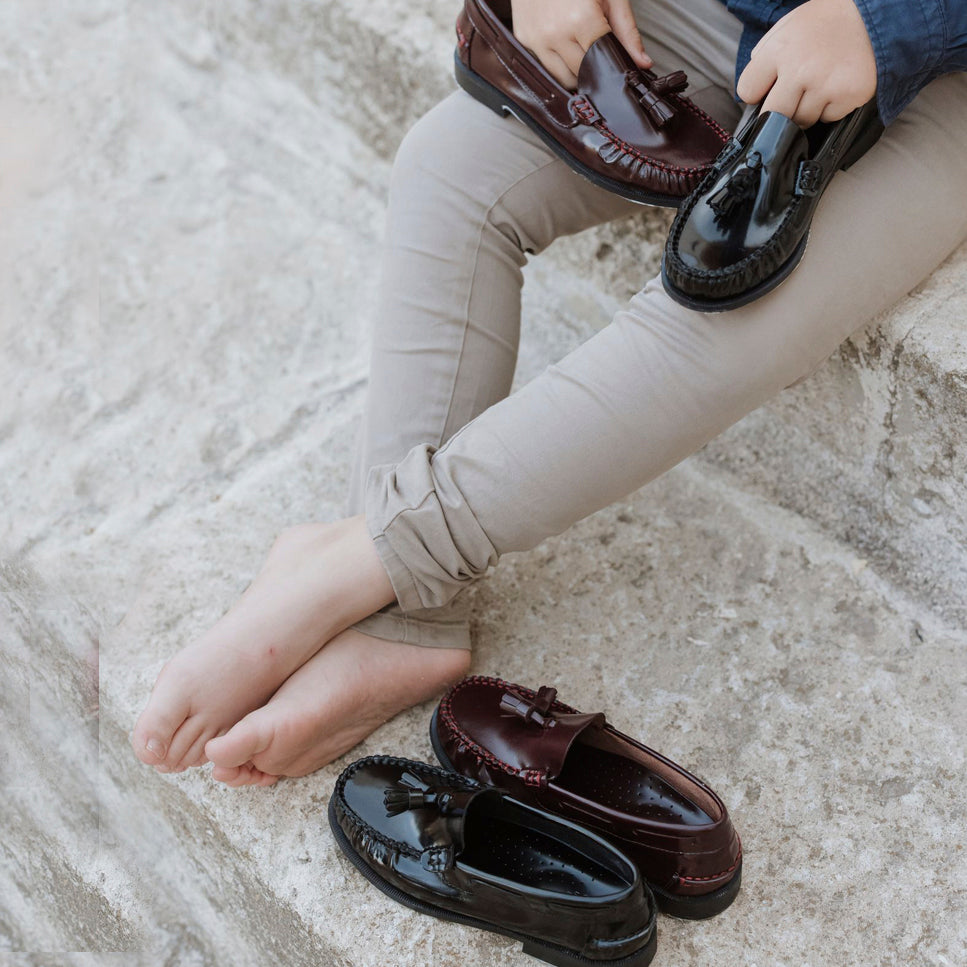 Classic Castilian loafers with tassels from our SIBARITAS collection, ideal for SCHOOL and CEREMONIES. A style that will never go out of style and will always be a surefire choice for the most demanding feet. The go-to footwear for dressing with class and style for both men and women. Available up to size 41. Made of high-quality Florentine bovine leather, with a breathable leather lining, to be worn with or without socks without chafing. Designed and handcrafted in Villena with high-quality materials and our special shoe tree, making them stylish yet very comfortable. With a non-slip rubber sole, resistant to any surface. Quality footwear is an investment in sustainability. Handmade in Spain with love.
