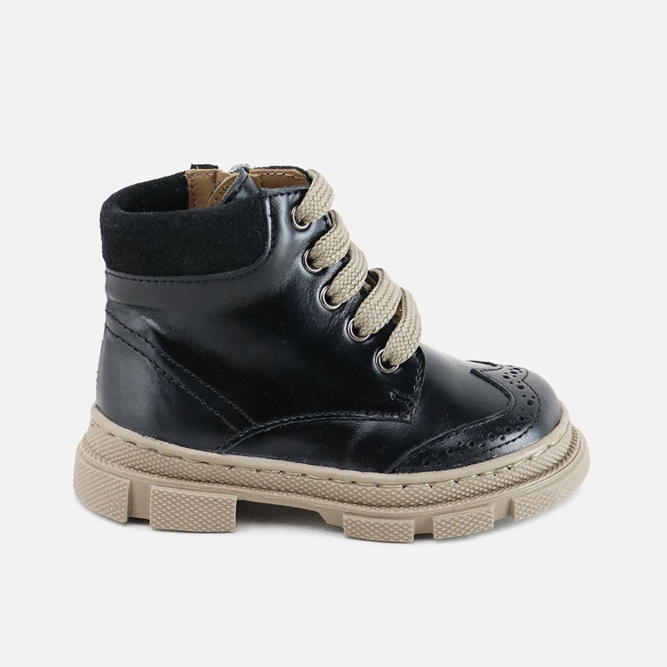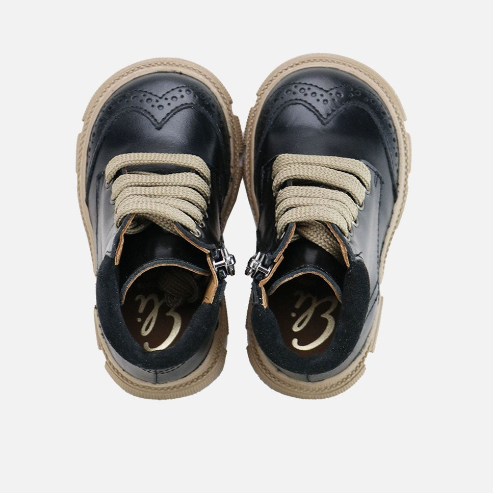 The most perfect leather boot from our SIBARITAS collection, which will fit the trendiest feet this season. Classic is in our essence, and with this boot we show that the most traditional models can be a success today, as long as they are accompanied by the best materials, patterns and last. You will love them for their design, but above all for their comfort, taking care of your feet to allow freedom but protecting them in all movements, surfaces and temperatures. Made of high quality bovine leather with a breathable cowhide lining that prevents sweat and keeps your feet at their ideal temperature. With matching cotton laces for adjustment, but its interior side zipper closure will make them easy to use. Designed and handcrafted in Villena with high quality materials and with our last endorsed after more than 30 years, wide in front to leave room for your little toes and perfect for protecting your heel. With a rough rubber sole, flexible and non-slip, but resistant to any surface. Go for traditional footwear, improved by the advances of so many years of tradition, for today's children. Quality footwear is an investment in sustainability. They fit half a size large. Handmade in Spain with love.