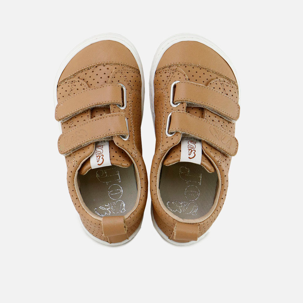Choose Eli SOFT if you love flexible, lightweight, and unreinforced footwear. Designed and manufactured in Spain, with style and maintaining all the important fit and stability features of healthy footwear for first walkers. Soft, die-cut cowhide sneakers with a double hook-and-loop closure, perfect for any look for our little explorers. Handcrafted. Flexible, non-slip rubber sole with zero-drop. Removable, breathable, and antibacterial insole. Wide fit to give little toes complete freedom. Choose traditional footwear, improved by the advances of so many years of tradition, for today's children. Quality footwear is an investment in sustainability. Available from sizes 24 to 38. Handmade in Spain with love.