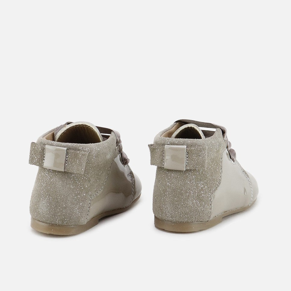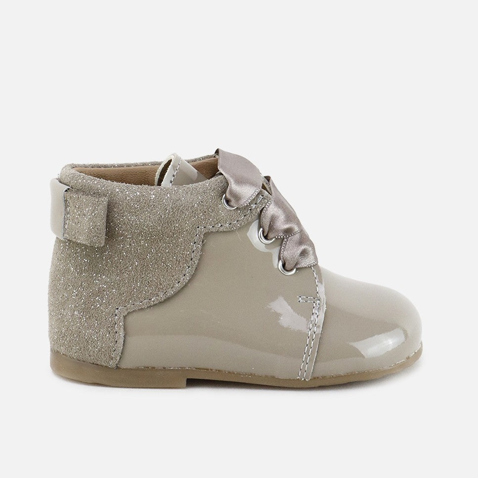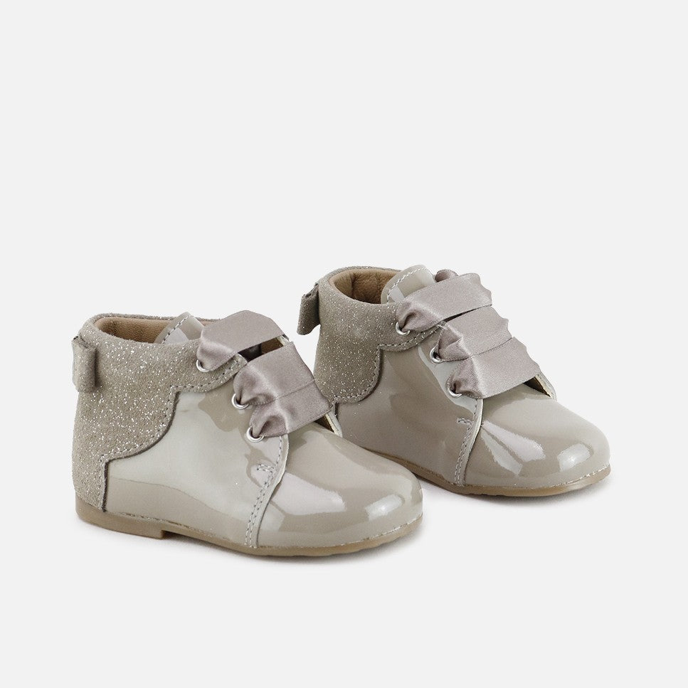 One of the cutest little boots in this collection, discovering the world will always be in style. Its cut, bow, and combination of leathers make this boot another marvel in our CUCADA collection, supporting feet from size 17 onwards as they gain confidence as they walk, gradually strengthening and developing freely, while protecting them with every step. This boot you'll remember over the years and will combine with a multitude of looks. Always well-shod and comfortable! Made with a perfect combination of cowhide and a breathable goatskin lining. Its satin lace-up closure adds the finishing touch and allows them to adapt to any foot. Designed and manufactured in Villena, with style while maintaining all the important fit and stability characteristics of healthy footwear for first-time walkers. A wide last to give little toes complete freedom, and a flat, non-slip, flexible rubber sole that's resistant to any surface. Choose traditional footwear, improved by the advances of many years of tradition, for today's children. Quality footwear is an investment in sustainability. Available from sizes 18 to 25. Handmade in Spain with love.
