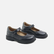 Mary Janes with a hook-and-loop closure from our TANKEE SCHOOL collection. A bestseller every year, these shoes accompany girls' feet throughout the school year as they learn and enjoy themselves. Their shape, cut, and snug fit, along with the reversible hook-and-loop strap, create a perfect combination for success. Made from high-quality cowhide and suede with a breathable leather lining that prevents sweating and keeps feet at the ideal temperature. Available in various color combinations. The hook-and-loop closure ensures a secure fit and allows girls to put them on independently. Designed and handcrafted with high-quality materials and our highly regarded ballet flat last, prized for its style and ability to maintain a comfortable and stable fit, promoting confidence and security in girls' and women's steps. The flexible, non-slip rubber sole is durable enough for any surface. Choose classic footwear, enhanced by years of tradition, for today's girls. Quality footwear is an investment in sustainability. Handmade with love.