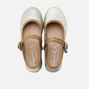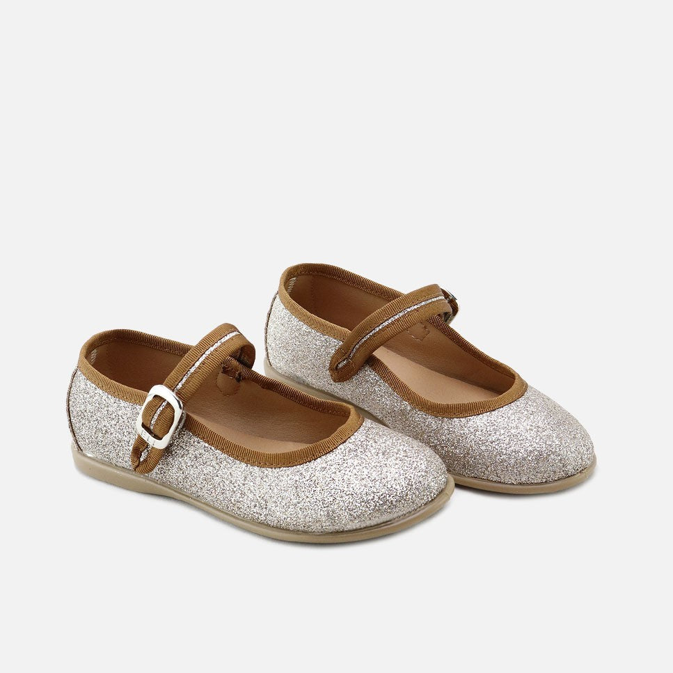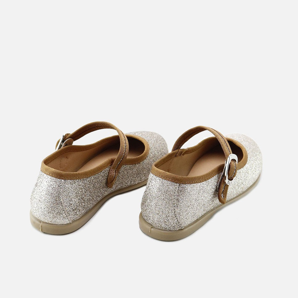 Choose Mary Janes from our Eli Basic line for quality and design at the best price. When basic and special come together, the result is a trendy, versatile, and incredibly comfortable model. They're so soft! We love them for ceremonies and for making them your summer staple. Made of glitter fabric with grosgrain trim, absorbent and thermoregulating inner lining, and a breathable and antibacterial removable insole. Designed and manufactured in Alicante, with style while maintaining all the important fit and stability characteristics of healthy footwear. A special ballet flat last is not only extremely comfortable, but also promotes safe and confident steps for children and adults. The rounded, non-slip rubber sole is lightweight and ultra-flexible. Comfortable, urban, fashionable footwear with original and trendy details. Handmade in Spain with love.