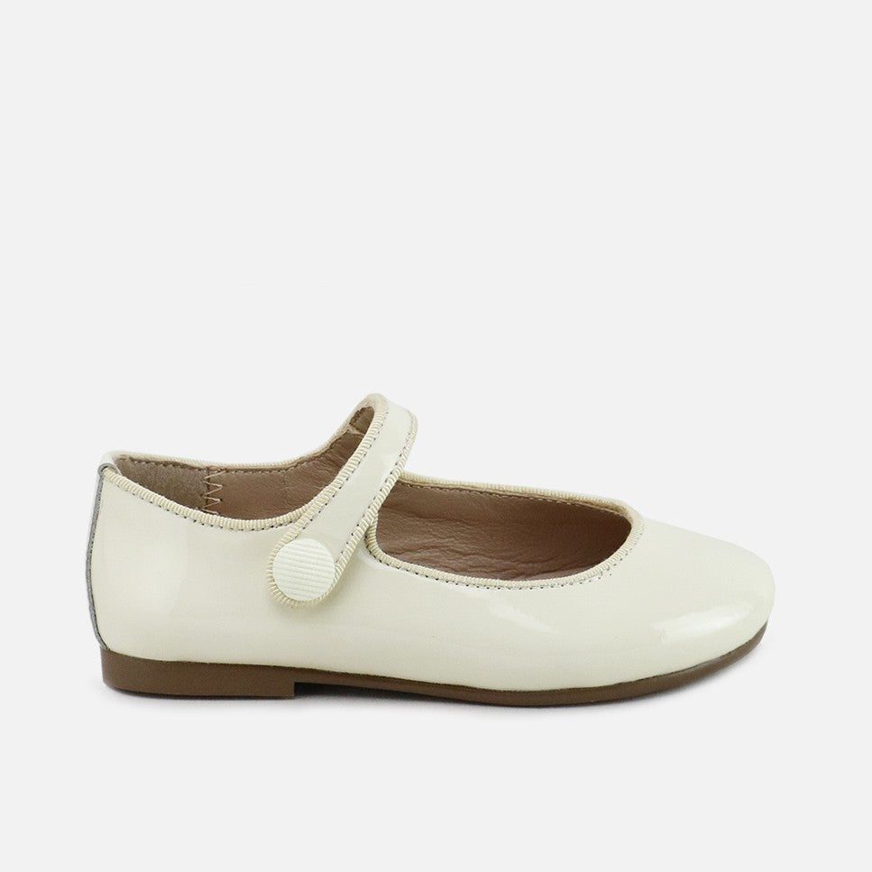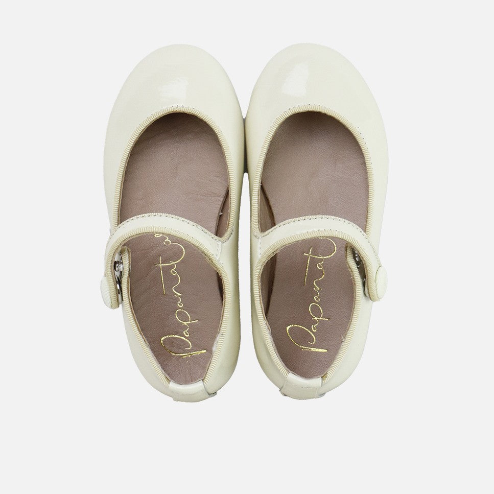 The best-selling Mary Jane from our Papanatas collection. Every season it is sought after for its perfect design. Its shape, its cut and just-right neckline, and its grossgrain trim, make a perfect mix for success. The ideal classic Mary Jane. They are perfect with any look, they will be the icing on the cake. Go for the footwear of a lifetime, improved by the advances of so many years of tradition, for today's girls. Quality footwear is an investment in sustainability. Available in different leathers and colours, with breathable leather lining. Once put on, they adapt perfectly to the foot. Fastening with snap buttons. Designed and handcrafted in Villena with high-quality materials and with our ballerina last so highly valued for its style and for preserving all the characteristics of fit and stability, favouring the safety and confidence of the steps of girls and women. With a thin, flexible and non-slip sole, but resistant to any surface. They fit true to size. Handmade in Spain with love.
