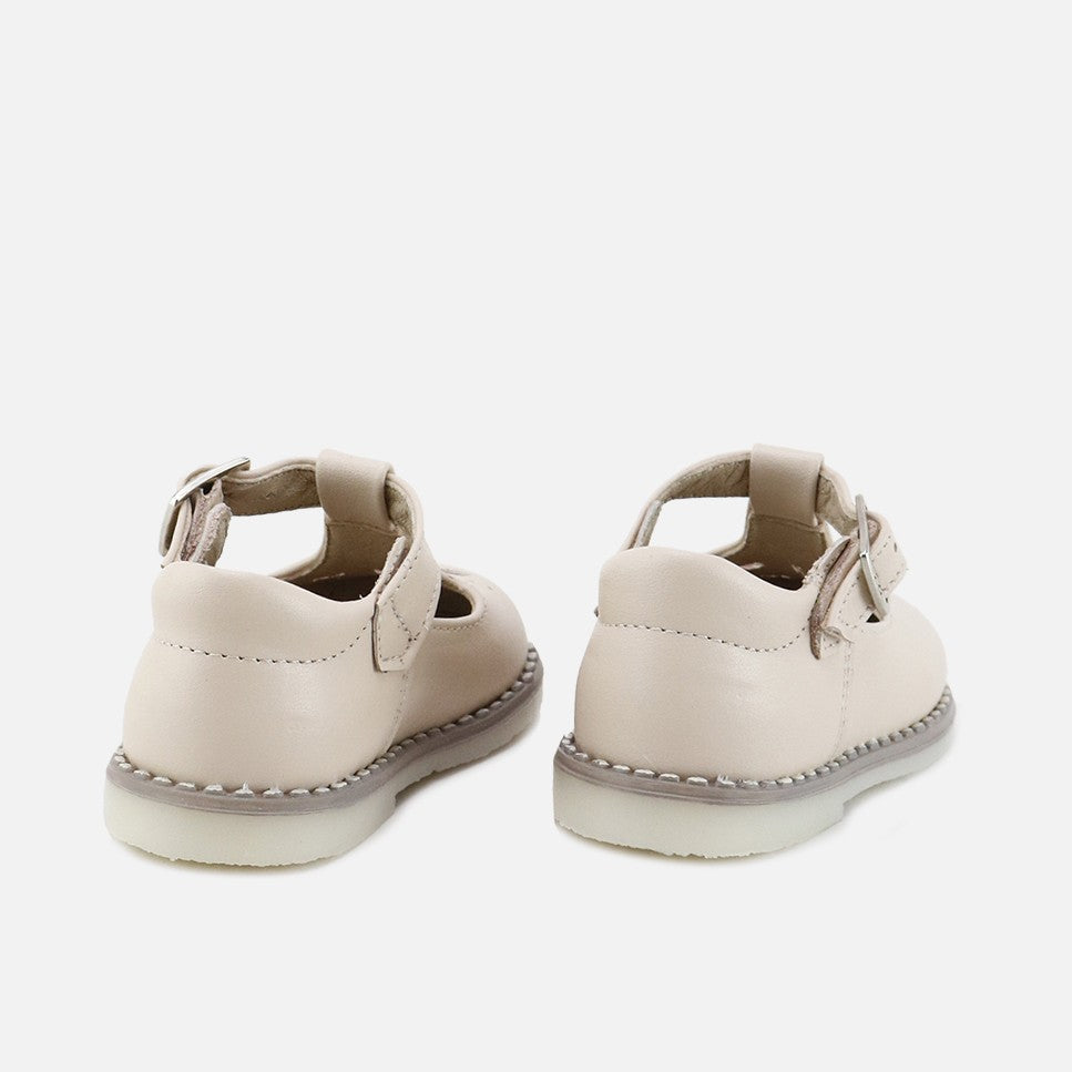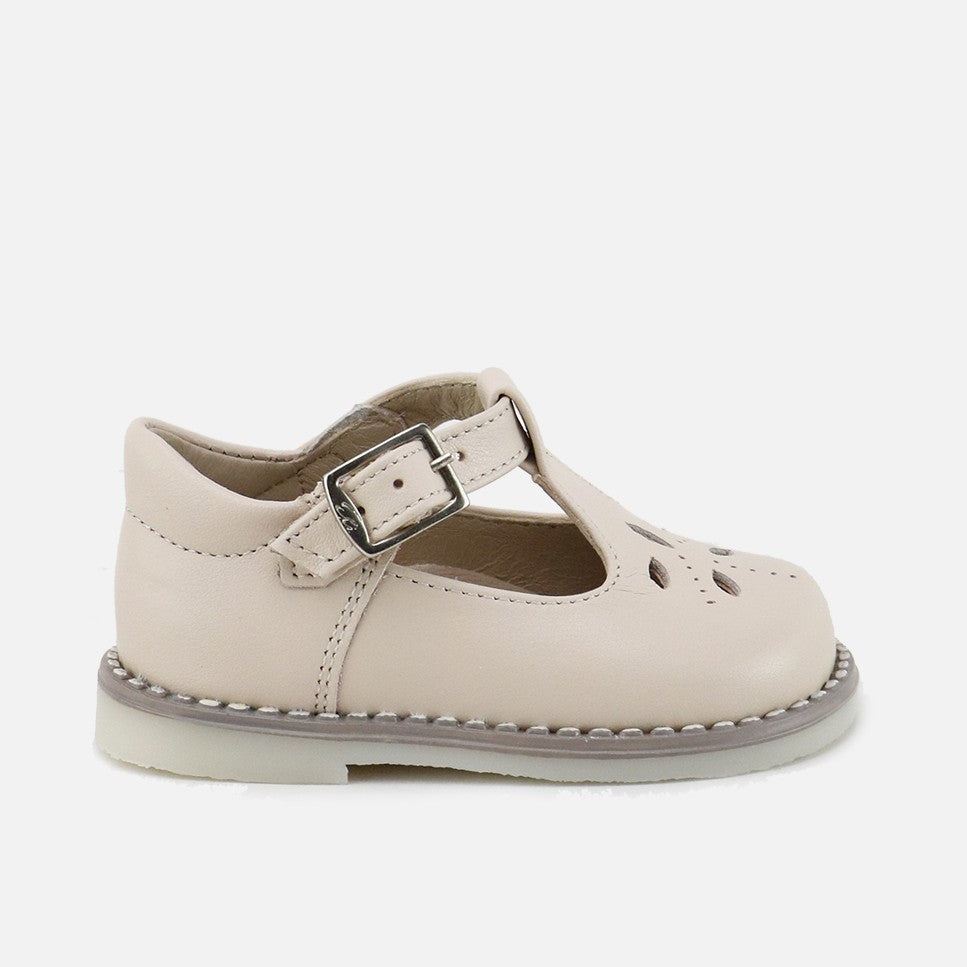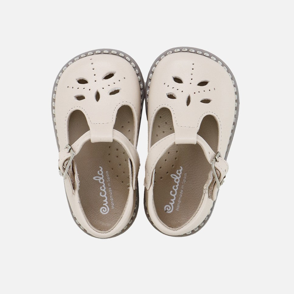 The ideal footwear for their first experiences. We love them for everyday wear because they're like a glove! A new version of the classic Pepito shoe with perforated vamps, part of the CUTE line of our CUCADA collection. They're characterized by being very light and soft, ideal for any occasion and extremely comfortable with or without socks. We accompany them as they gain confidence, so that little by little their feet strengthen and develop freely, while protecting them with every step. Made with cowhide and a high-quality, breathable, and very soft goatskin lining. High-quality materials that fit perfectly. Buckle closure. Designed and manufactured in Villena, with style while maintaining all the important fit and stability characteristics of healthy footwear for first walkers. Wide last to give their little toes complete freedom and a flat, non-slip, flexible, ridged rubber sole. Handmade in Spain with love.