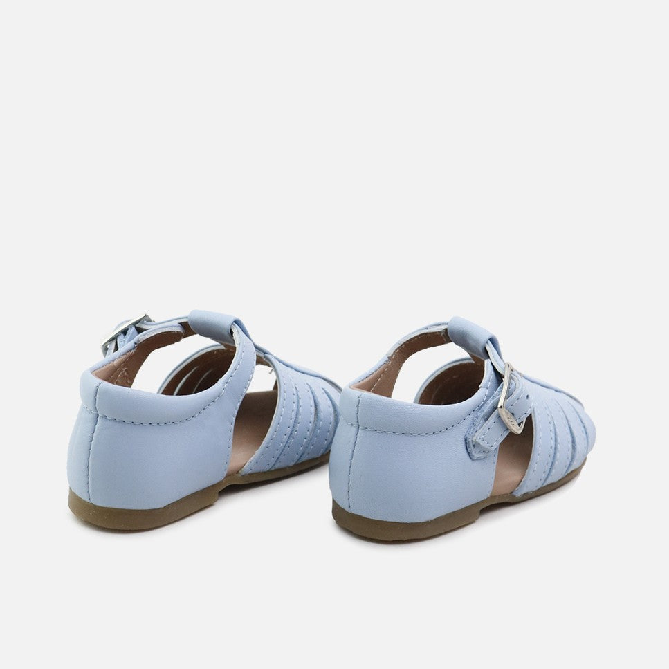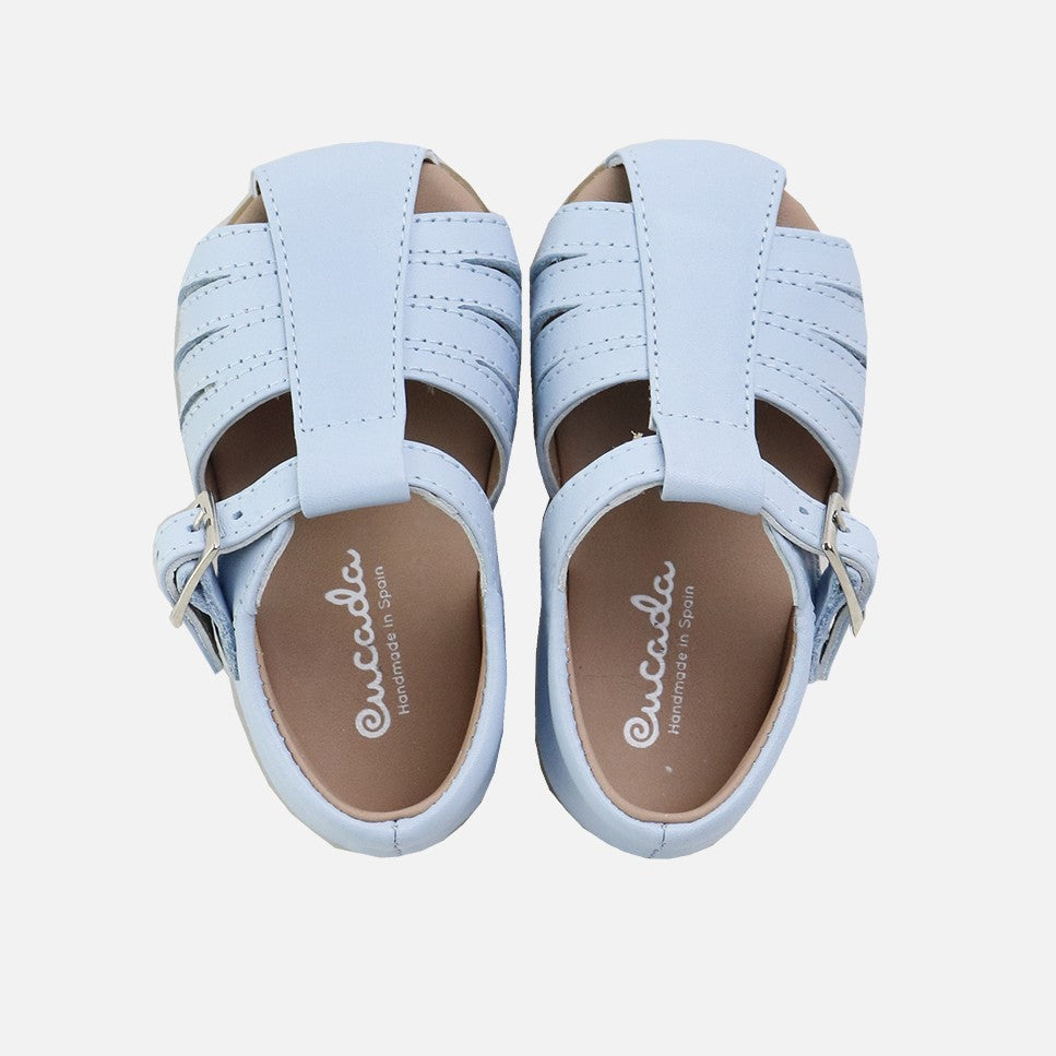 Our classic sandal from the CUCADA collection for first steps. Their closed toe gives them more security than an open sandal, making them more unique and versatile for any occasion. Made of super-soft cowhide nappa leather and a breathable leather lining. Their color matches everything, and the buckle closure makes them adaptable to any foot. Designed and handcrafted in Villena with high-quality materials and our special last to promote the security and confidence of little feet taking their first steps, with a wide front to allow room for their toes. With a flat, flexible, and non-slip sole, yet resistant to any surface. Available from sizes 18 to 25 and in more colors. Handmade in Spain with love.