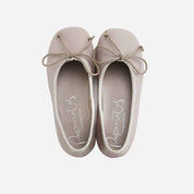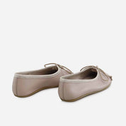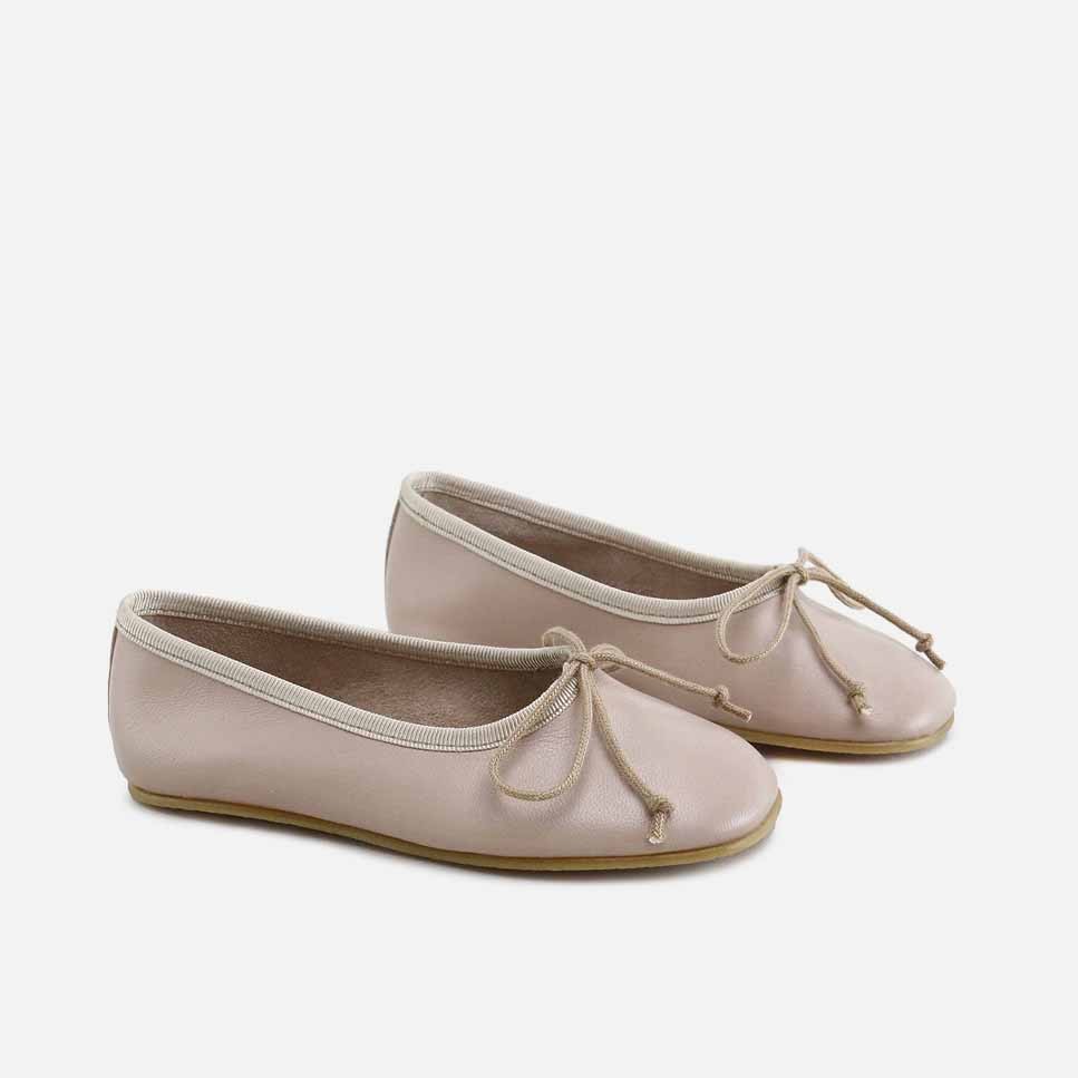 The classic ballerina flat with a fine cord and grosgrain ribbon bow, now with a super-soft crepe sole. Part of our PAPANATAS collection, which dresses the feet of girls and moms. Ideal for sharing a style. Available in various shades of high-quality soft leather, with a breathable leather lining. Once worn, they adapt perfectly to the foot. Designed and handcrafted in Villena with high-quality materials and using our ballerina last, so highly regarded for its style and for maintaining all the characteristics of fit and stability, promoting safe and confident steps for girls and women. With a thin, flexible, and non-slip sole, yet resistant to any surface. Opt for traditional footwear, improved by the advances of so many years of tradition, for today's girls. Quality footwear is an investment in sustainability. Handmade in Spain with love.