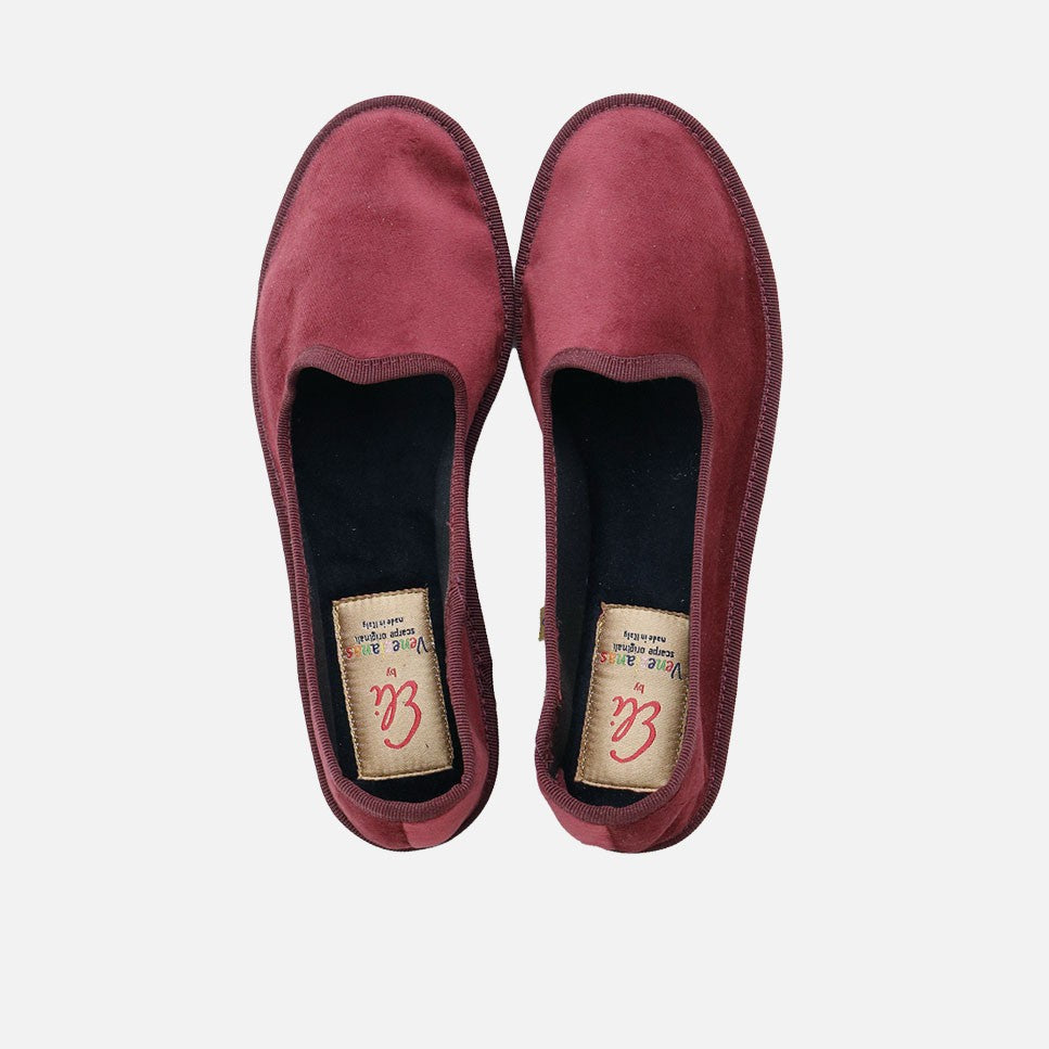 The most special collaboration, "Eli by Venezianas," returns this Spring in the most desirable combinations. Classic slipper-style shoes with a round toe, made using the traditional sacchetto technique. Available in various shades of velvet, with a non-slip recycled rubber sole. Comfortable, non-slip, and harmless to wood, they were and are perfect for wearing on boats, hence their popularity among Venice gondoliers. Wearing Venezianas is a lifestyle that discovers the pleasure of wearing them. This, along with their comfort and style, makes them ideal for any occasion. VENEZIANAS are genderless; women and men wear them equally. And now, with this new collaboration, even the little ones in the house will enjoy them. Handmade in Italy.