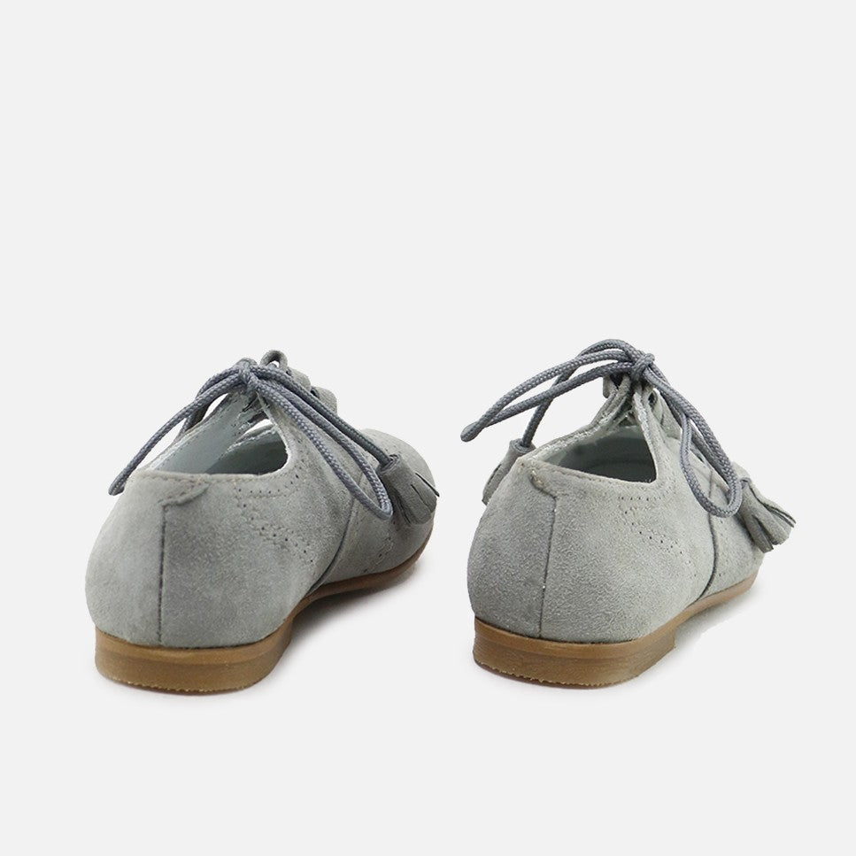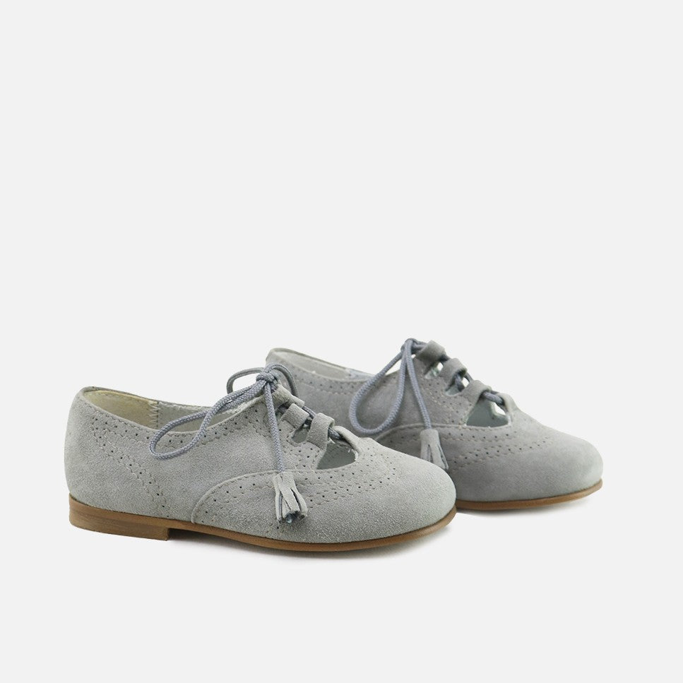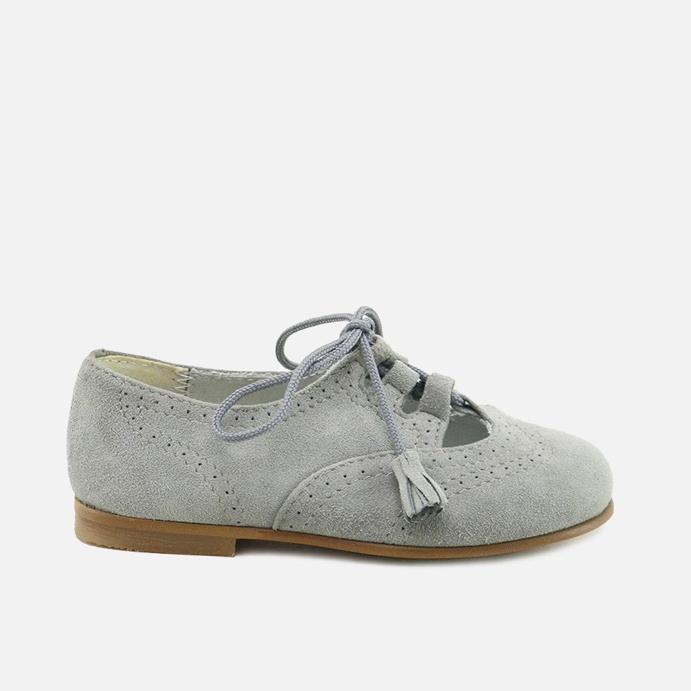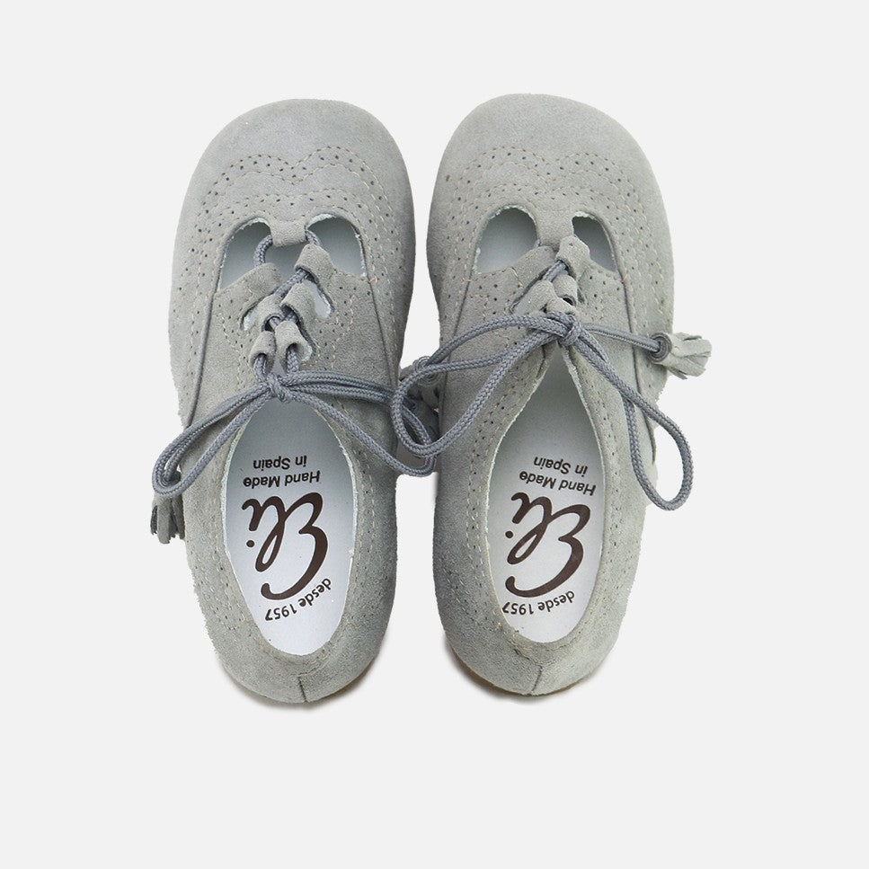 Classic Eli English shoe with perforations, tongueless version. The favourite shoe for dressing with class and style. Its shape, cut and perforations make it a best-seller year after year. The classics that will last over time and that make the difference at first sight. Made of high quality leather with breathable leather lining that prevents sweat and keeps feet at their ideal temperature. Available in various combinations, choose your favourite! Closure with round cotton laces with tassels of the same leather. Designed and handcrafted in Villena with high quality materials and with our shape so highly valued for its style and for preserving all the characteristics of fit and stability, favouring the safety and confidence of children's steps. With a thin, flexible and non-slip rubber sole, but resistant to any surface. Go for the footwear of a lifetime, improved by the advances of so many years of tradition, for today's children. Quality footwear is an investment in sustainability. They fit their true size. Handmade in Spain with love.