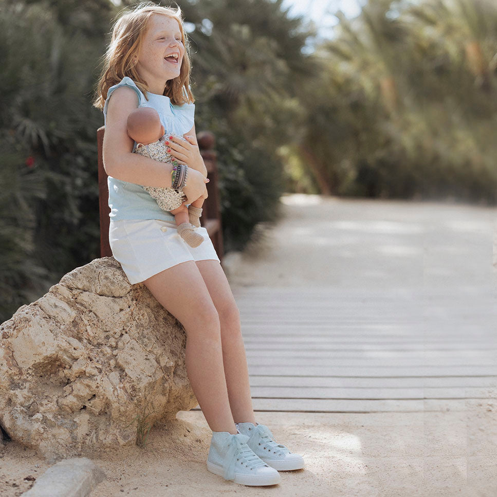 Choisissez les chaussures de sport de notre ligne Eli Basics pour accompagner vos pas avec qualité et design au meilleur prix. Les bottes URBAN 57 dans leur version Glitter la plus spéciale. Basique et tendance, confortable et super combinable, qui s'en soucie plus ?! Fabriqué en tissu pailleté de haute qualité, doublure intérieure absorbante, respirante et antibactérienne. Fermeture avec des rubans en mousseline pour leur donner la touche finale et un ajustement parfait. Conçu avec style et fabriqué à la main à Alicante avec des matériaux de haute qualité et avec notre forme spéciale sport qui, en plus d'être très confortable, favorise la sécurité et la confiance des pas des enfants et des adultes. Fond de coque en caoutchouc antidérapant et ultra flexible. Ils sont bien ajustés, en cas de doute, choisissez une taille au-dessus. Fabriqué à la main en Espagne avec amour.
