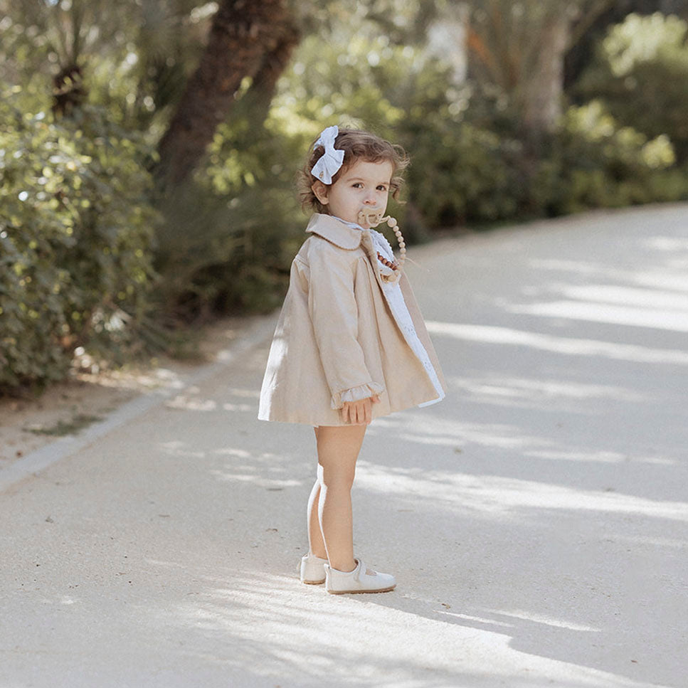 Fabricada en piel vacuna suave y flexible, esta mercedita se adapta con delicadeza a la forma natural del pie infantil. La puntera redondeada y ancha permite que los deditos se muevan con libertad, respetando el desarrollo motor y postural desde las primeras etapas.