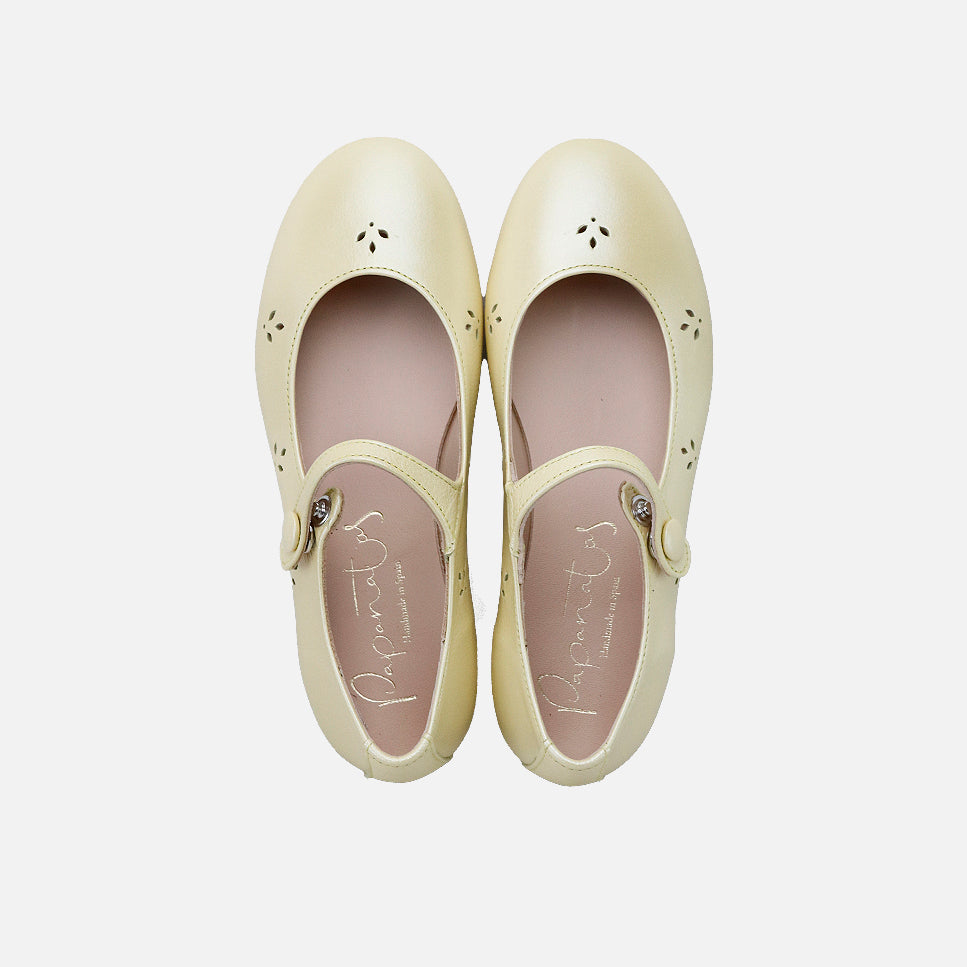 Este nuevo patrón combina el encanto de la merceditas tradicional con un delicado troquelado floral, que aporta luz, elegancia y un acabado muy especial. Su corte limpio y su diseño versátil las hacen perfectas para ceremonias, comuniones, ocasiones especiales y también para el día a día.