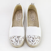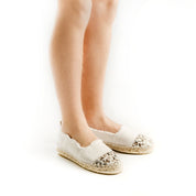 *Realizada en lino de alta calidad y puntera de piel ovina timbrada efecto leo. Forro entero de piel caprina.